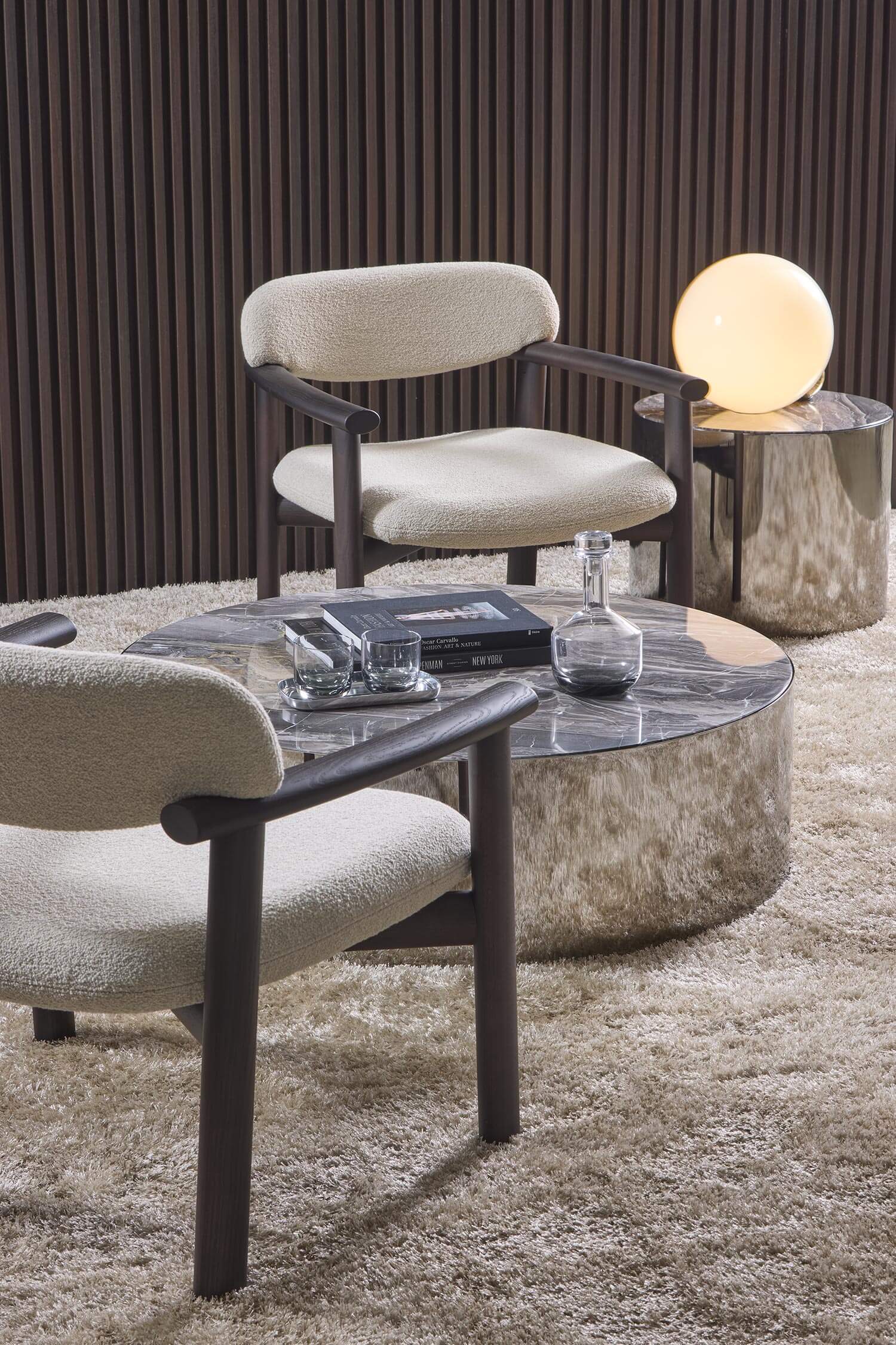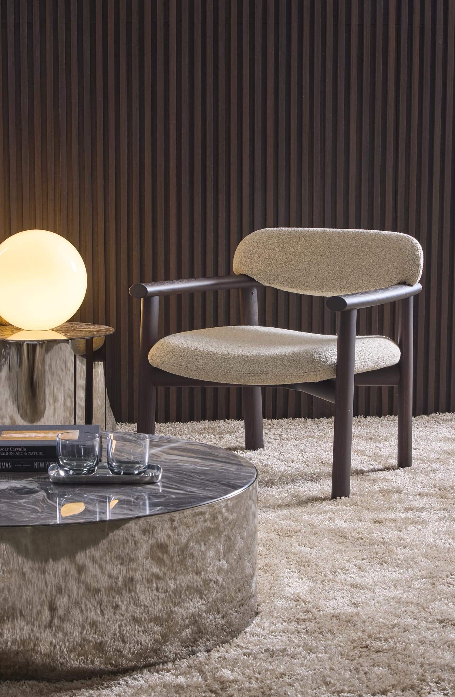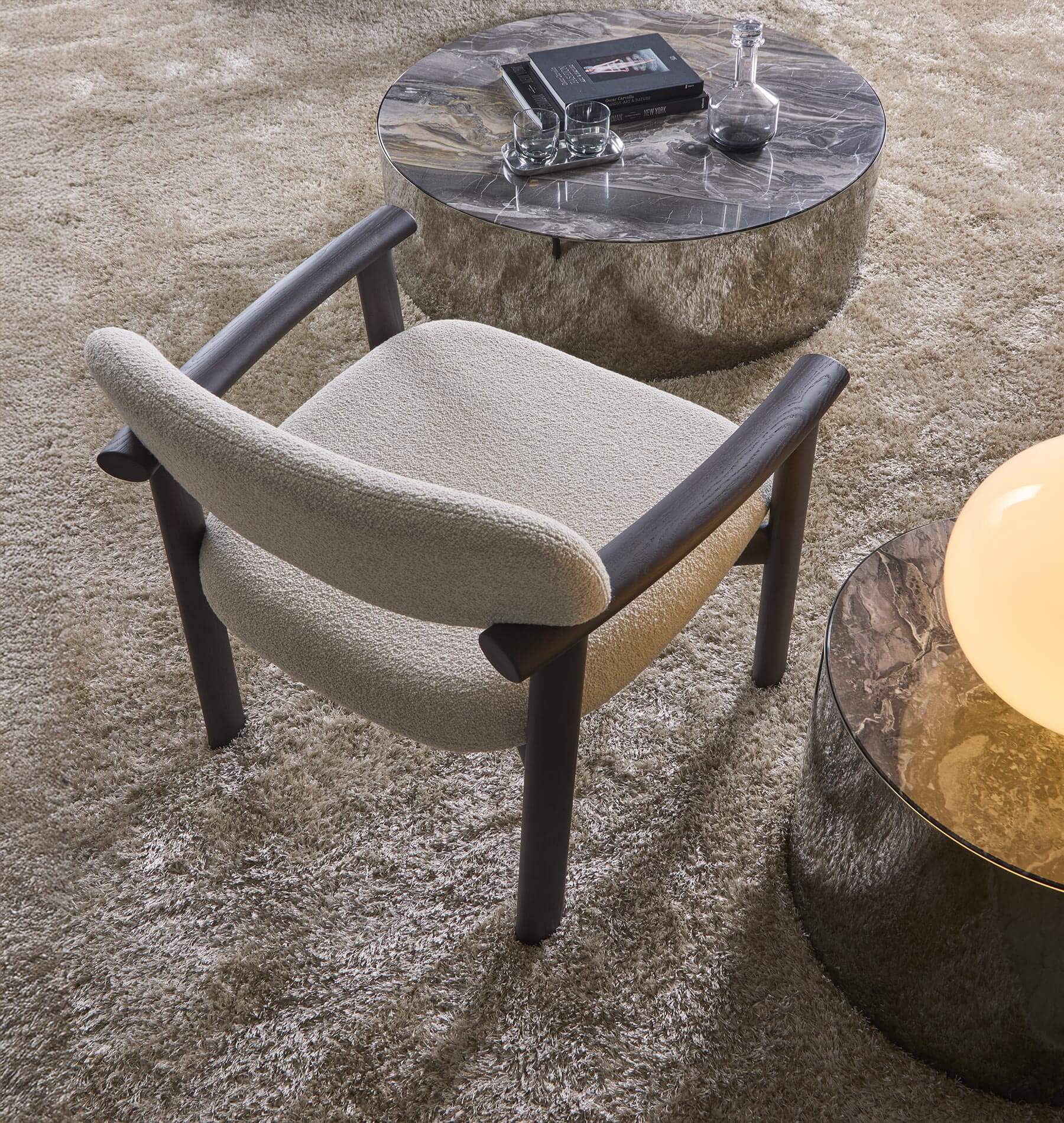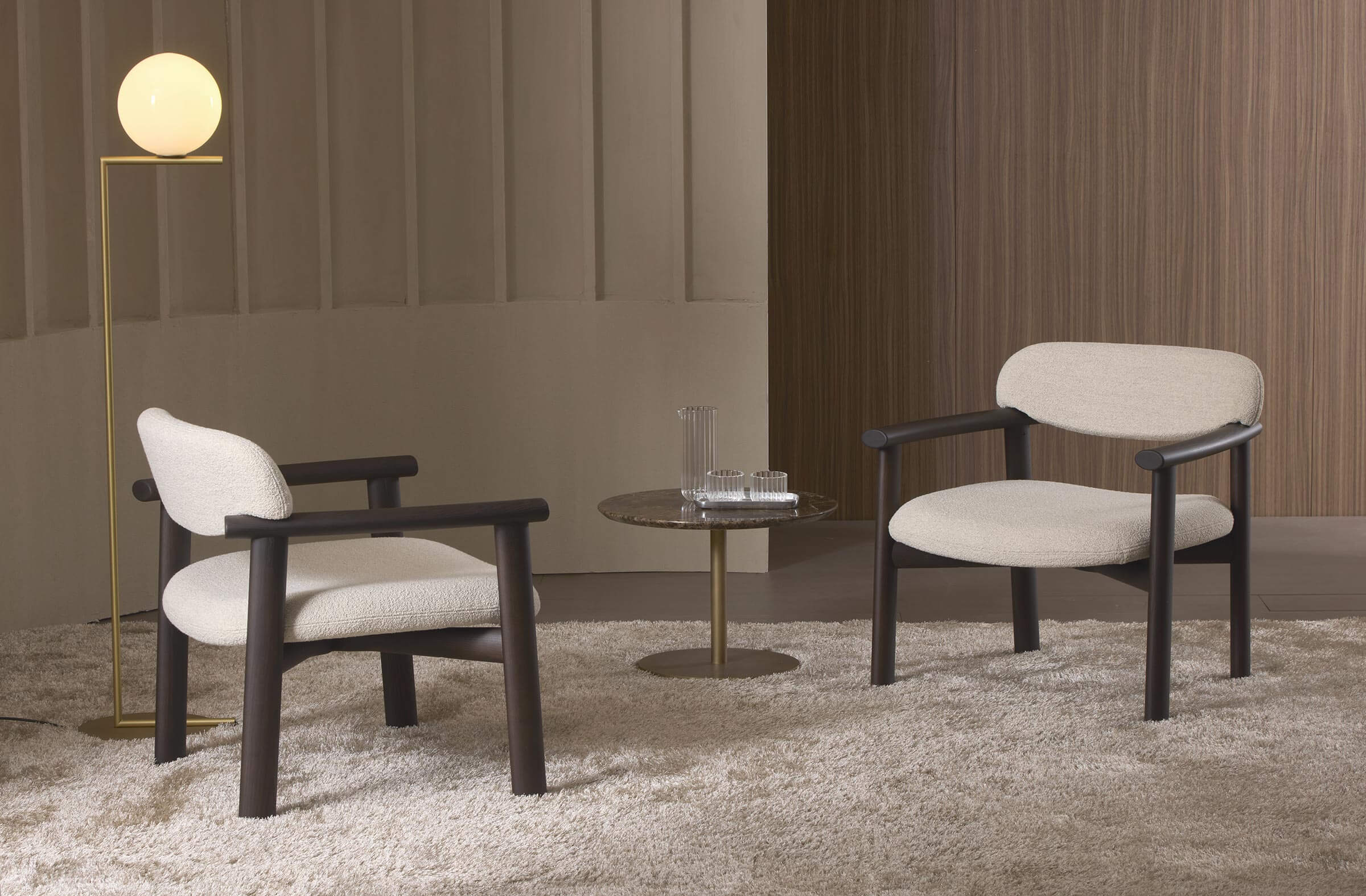 Available in over ten wood finishes, the Afra collection is perfectly suited to residential, contract and hospitality environments. The chair, with its slender profile, is ideal for dining rooms and sophisticated work environments, while the armchair, with its wider, enveloping seat, is the perfect solution for lounges, relaxation areas and prestigious spaces.