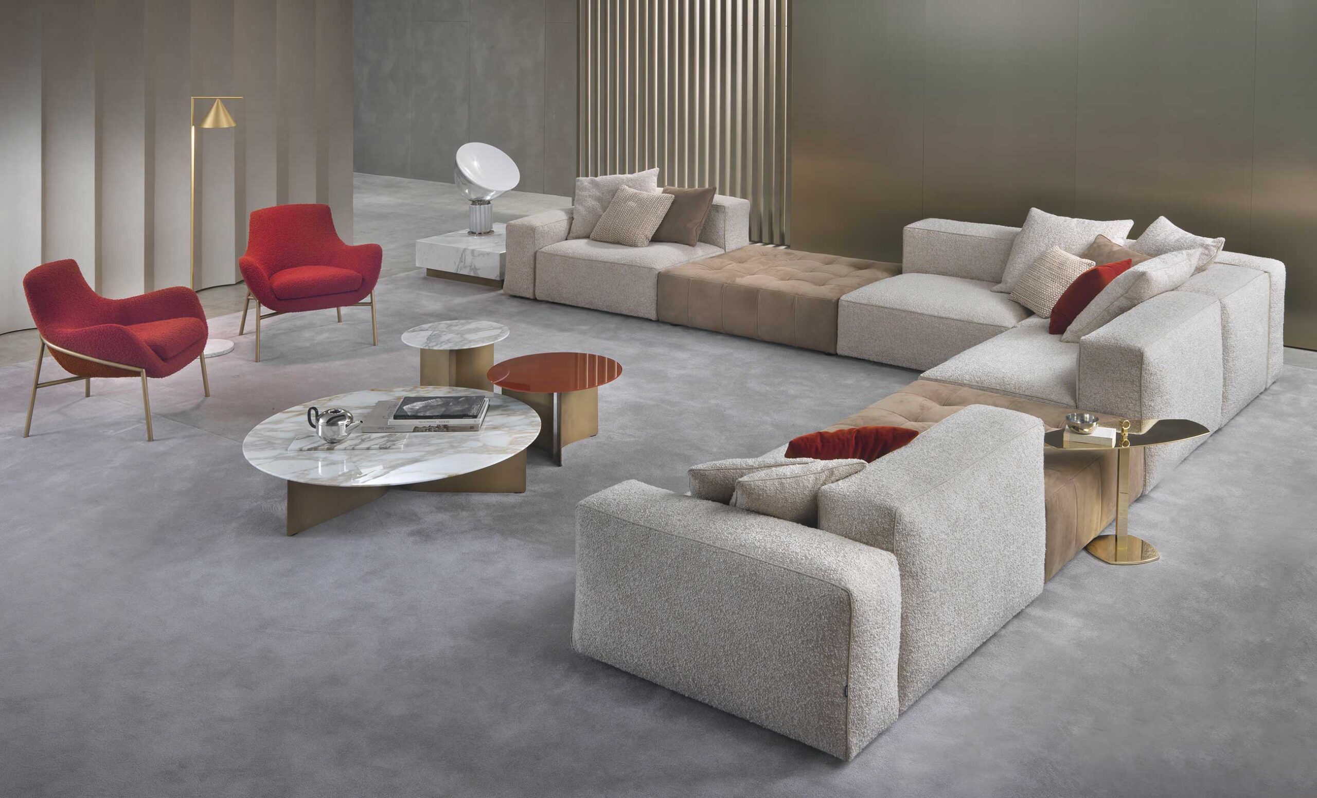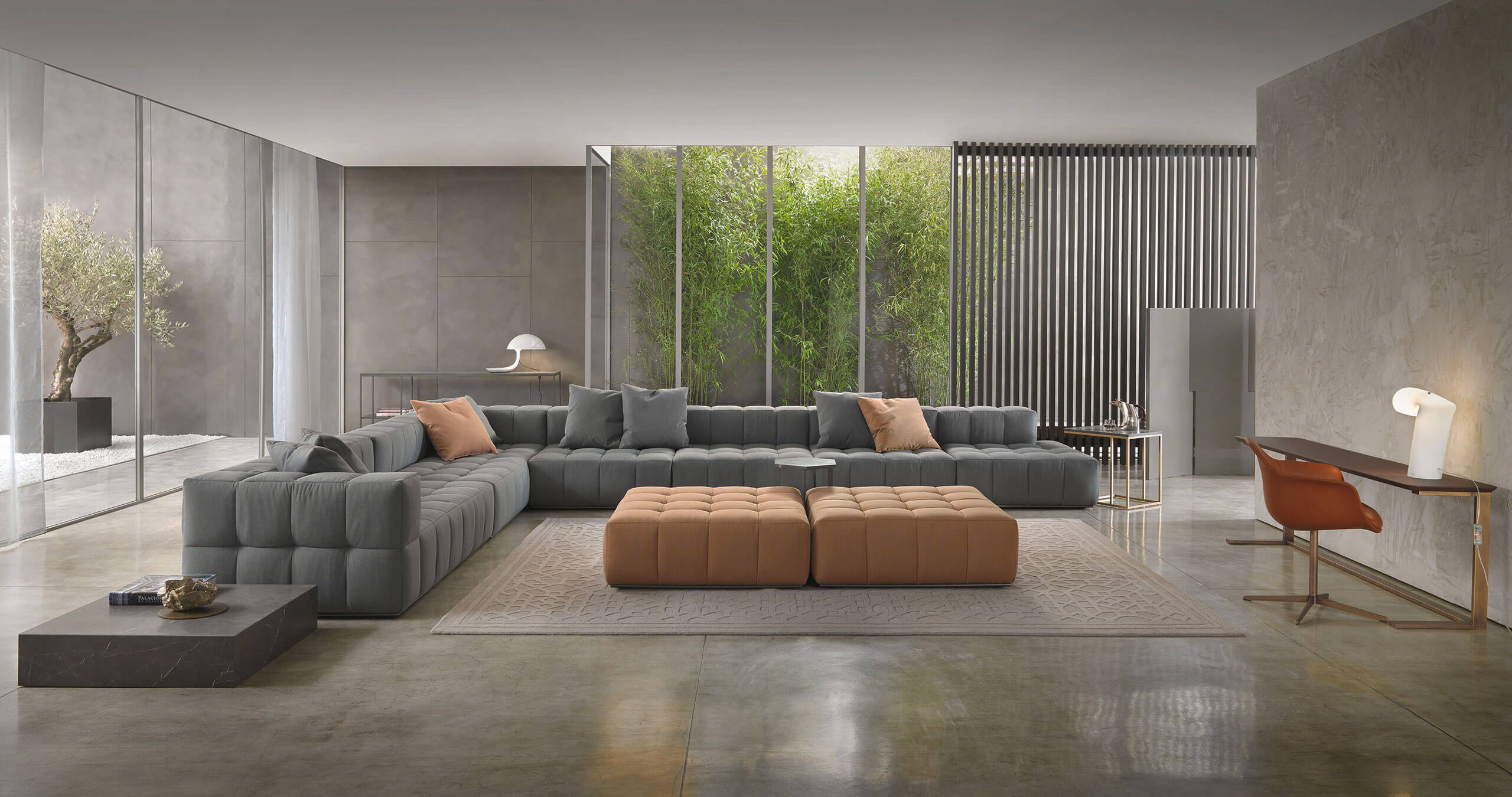 Andy is a family of iconic sofas designed with two fundamental principles in mind: modularity and comfort. More than 30 different elements are available in the catalogue, including centre, side, dormouse and ottoman elements, which can be combined in different configurations according to design requirements.