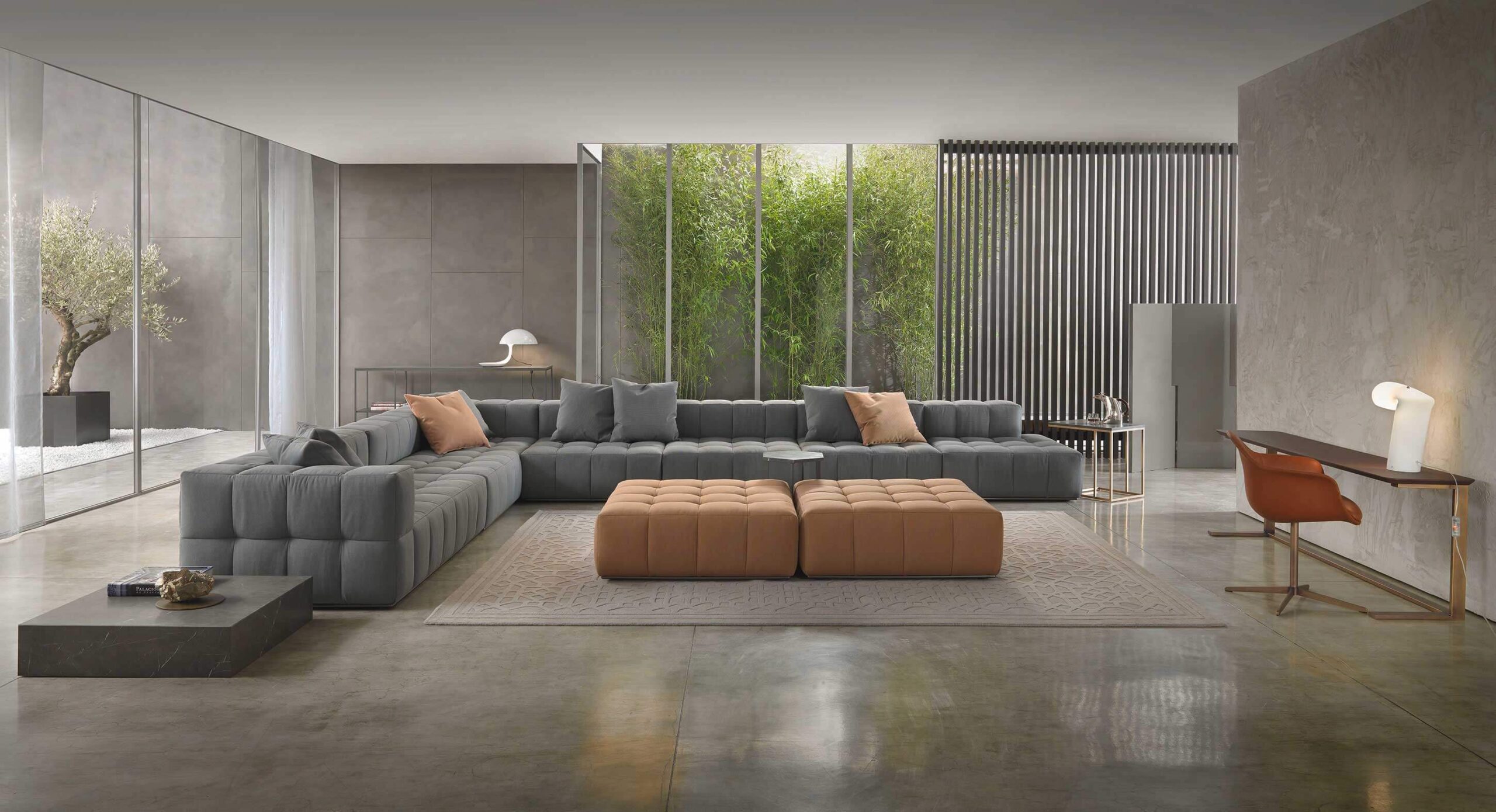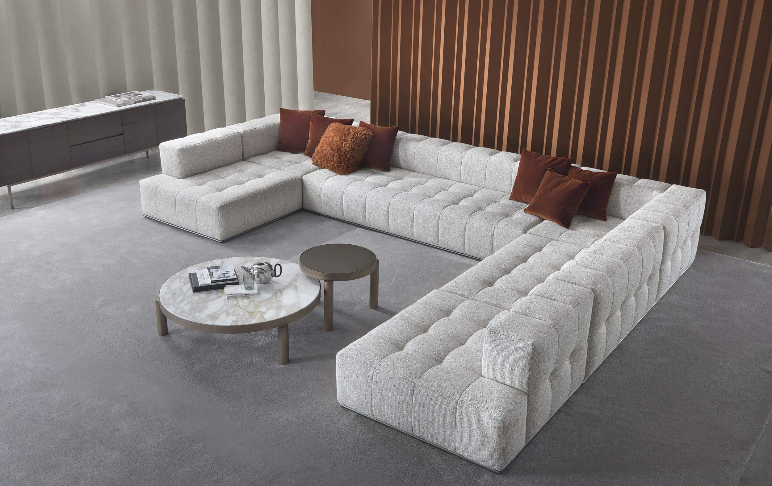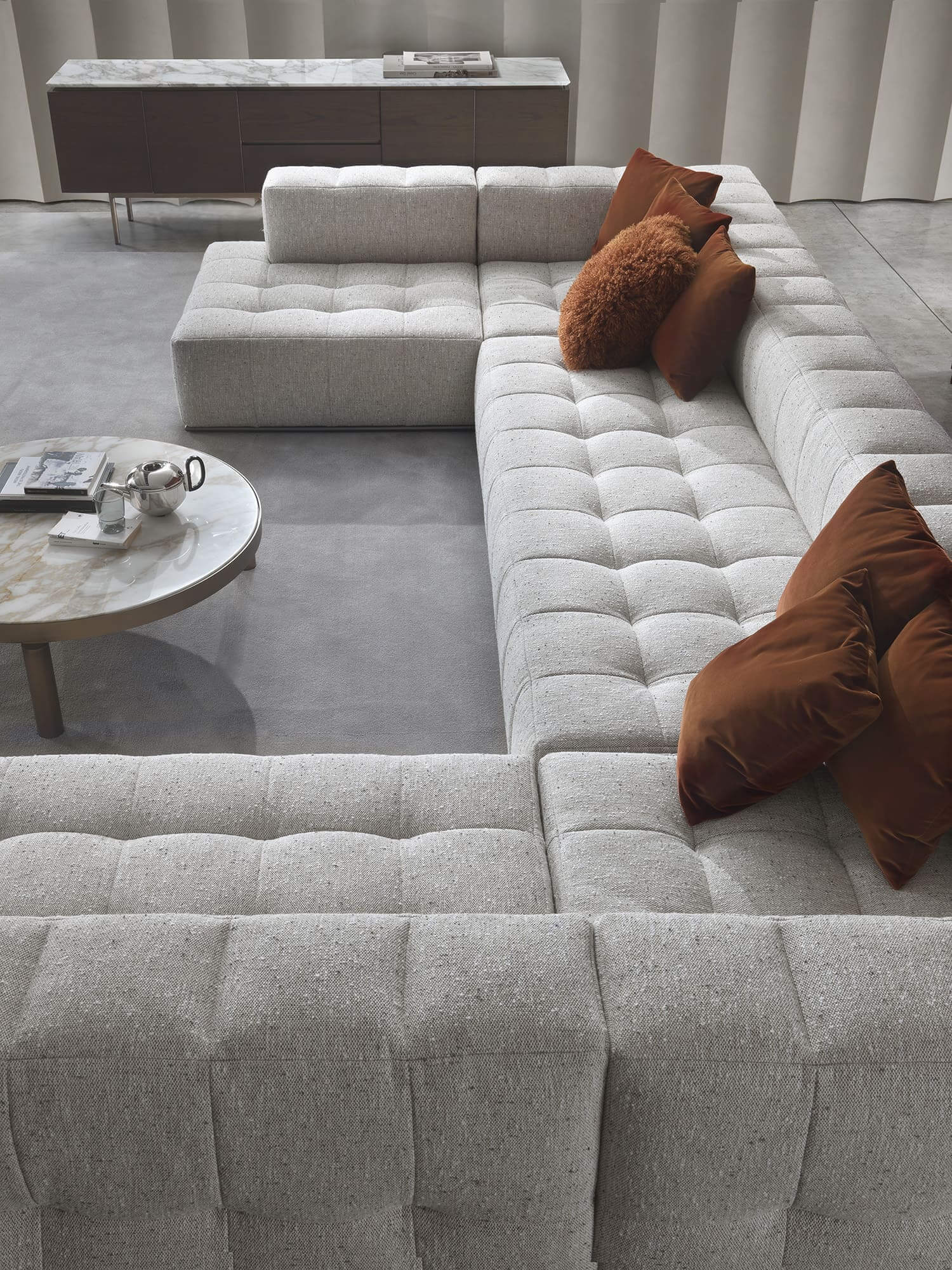 Andy is a modular quilted sofa designed to adapt elegantly and functionally to any design context. With its various elements, including central modules, end units, dormeuse and ottoman, it offers endless possibilities for customisation and configuration of space.