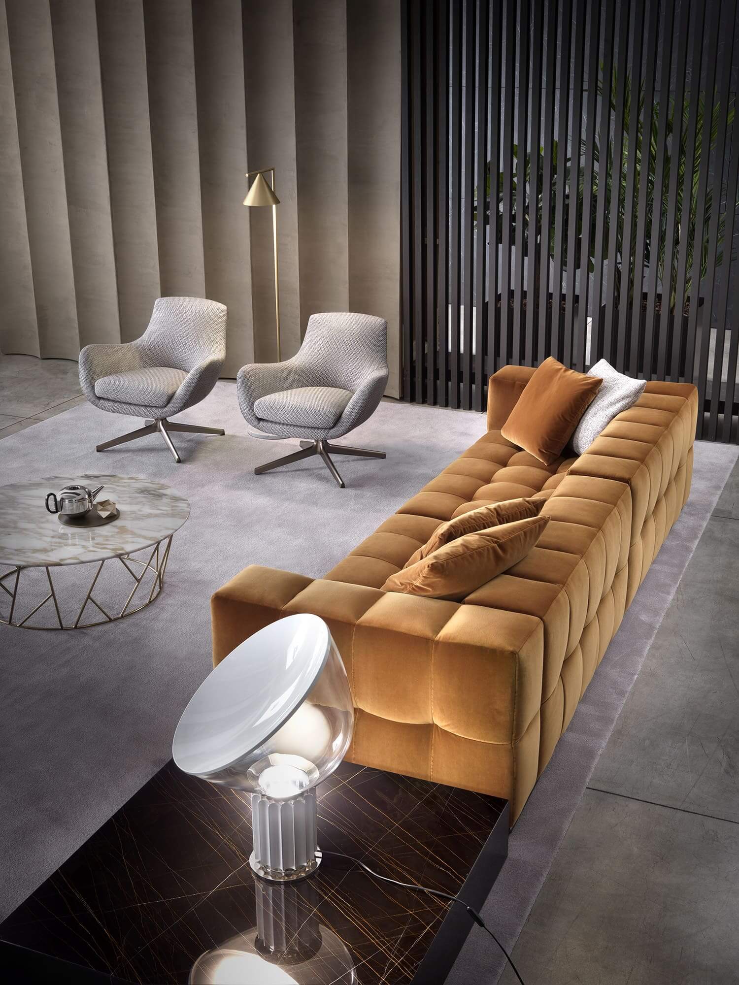 The Andy sofa is distinguished by a distinctive feature that defines its character, transforming it into a furnishing element capable of dialoguing harmoniously with the surrounding architecture.