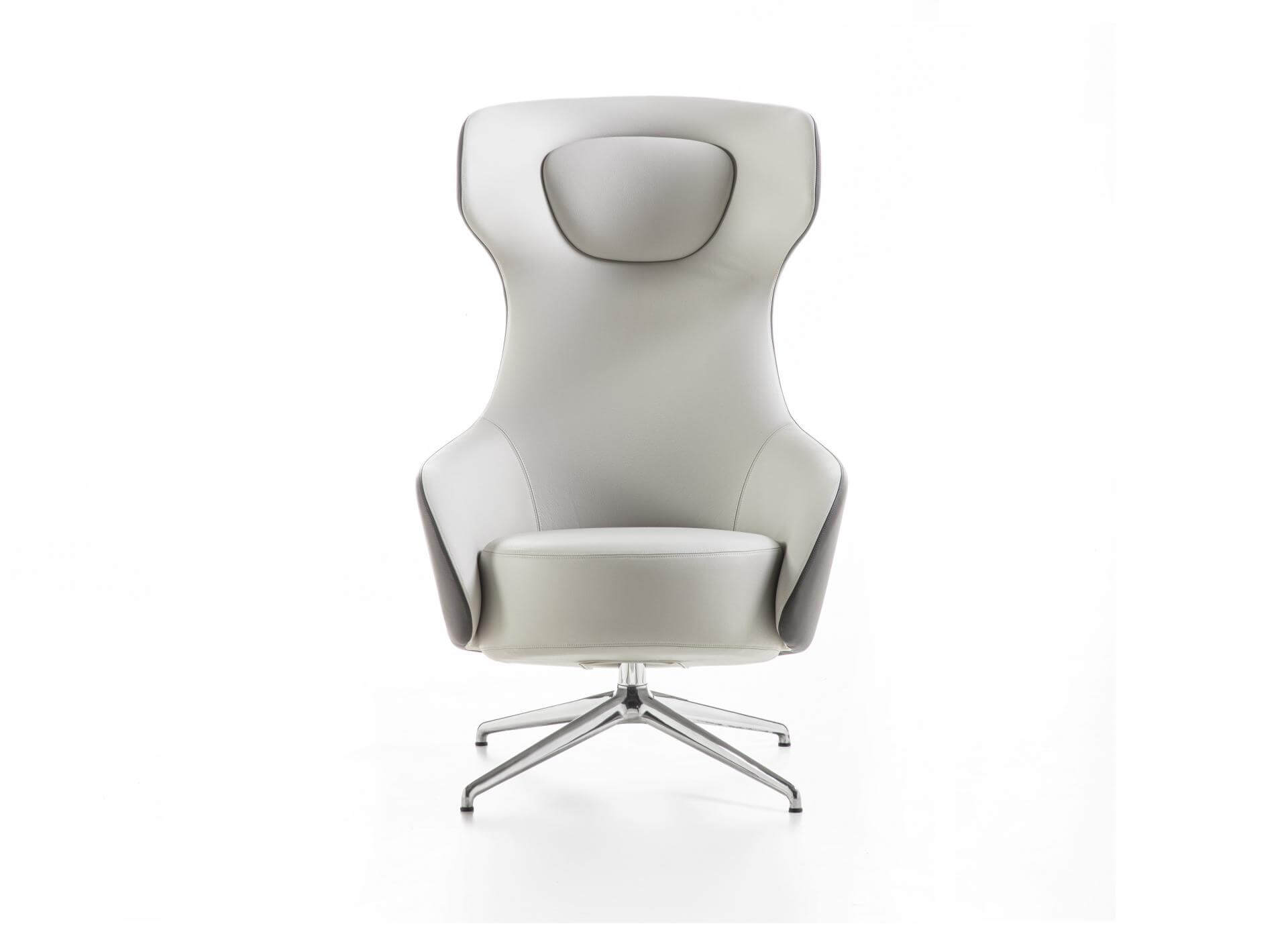 Relax armchair with back in foam with metal frame, integrated headrest cushion and 4-star base.
