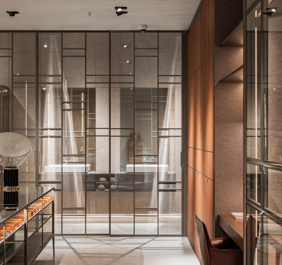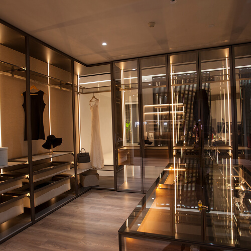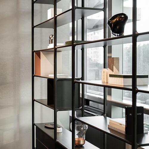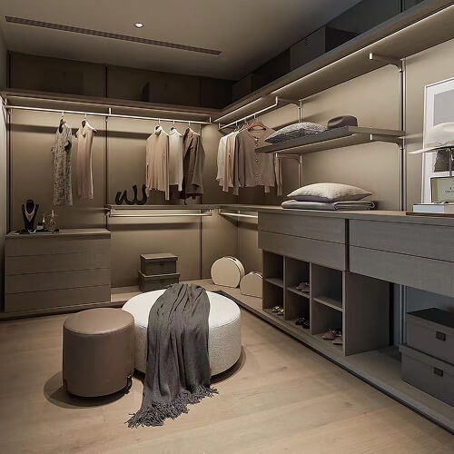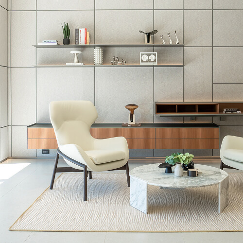 Sofa with solid wood structure composed of legs and backrest and padded seat covered in fabric or leather.