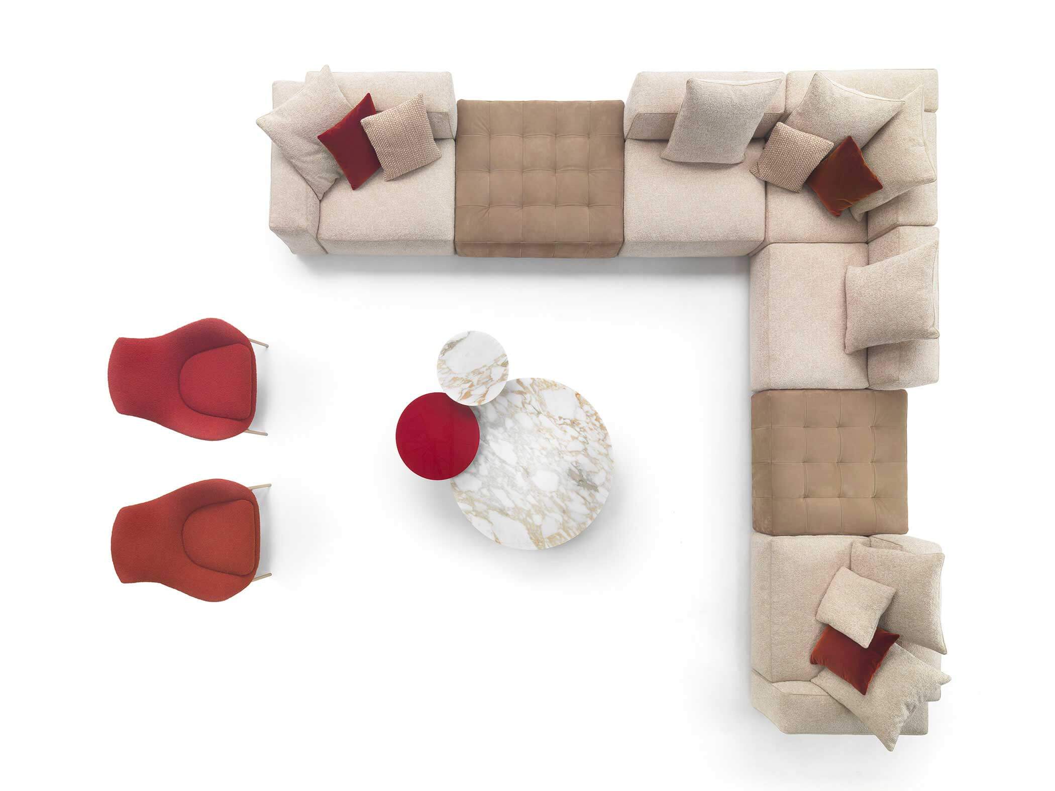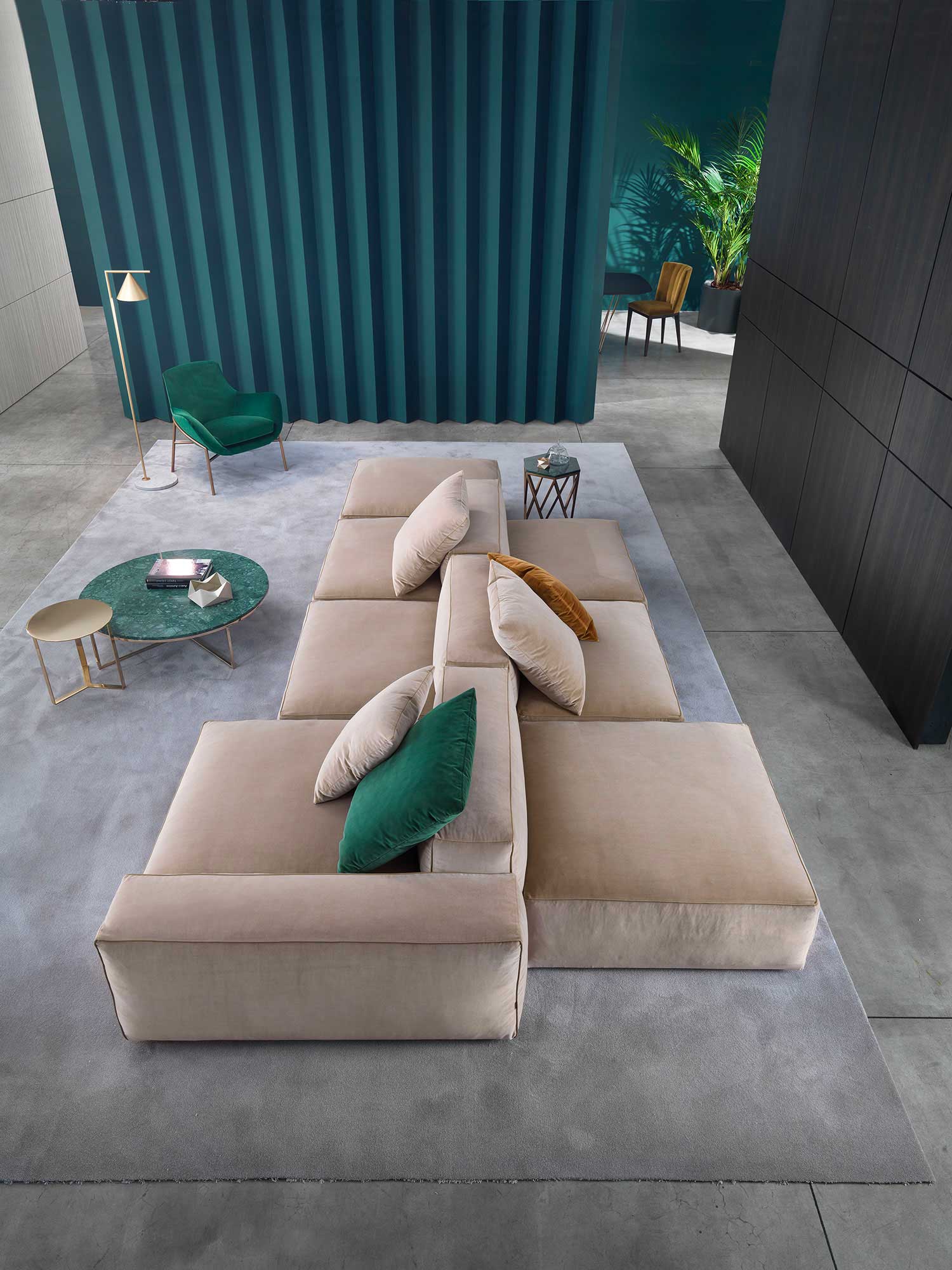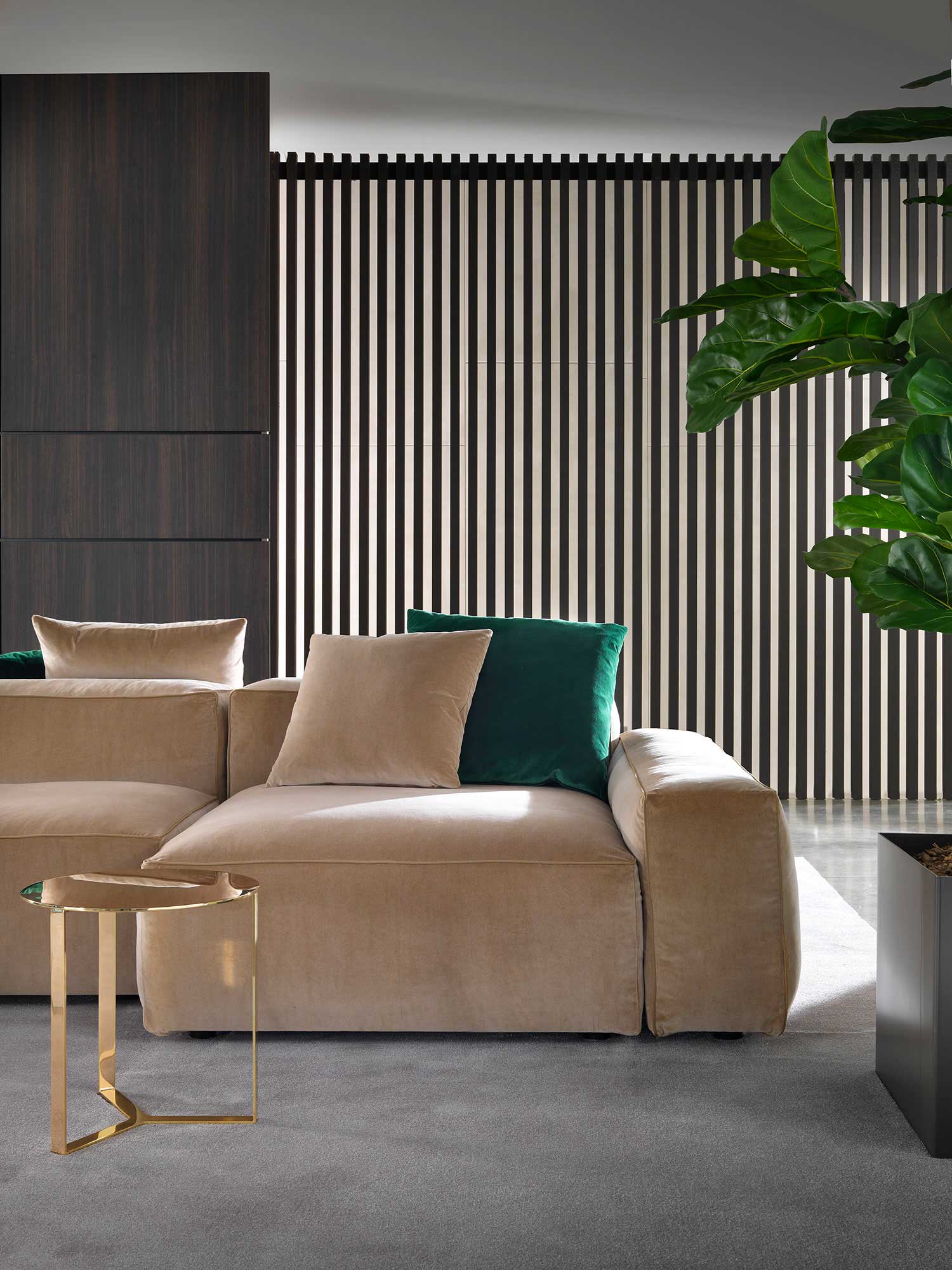 Gary is a very comfortable and versatile sectional sofa that offers the possibility of combining different shapes thanks to the variety of module heights and sizes. Its modern and contemporary design makes it suitable for both residential and contract environments.