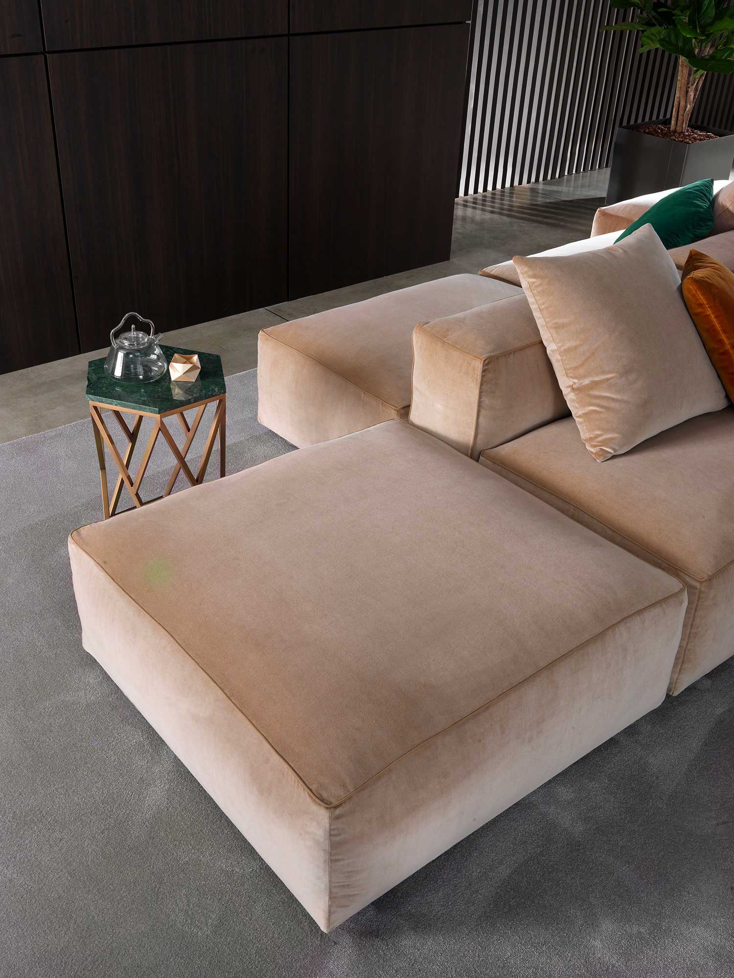 The possibility of combining elements with those of the Andy family adds further design and customisation options. By creating a sofa with a strong visual impact and different types of seating, customers can truly create a unique piece that stands out and suits their personal taste.