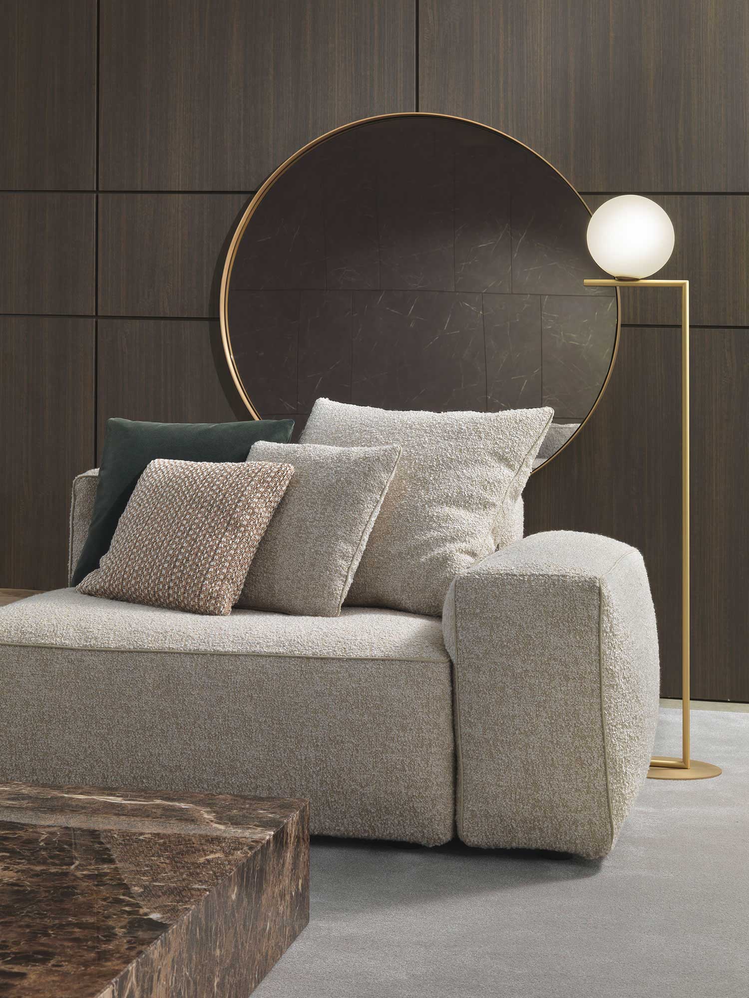 One of Gary’s distinguishing features is its feather upholstery, which guarantees optimal comfort. However, a version with rubber upholstery is also available, which gives the sofa a stiffer, more structured look.