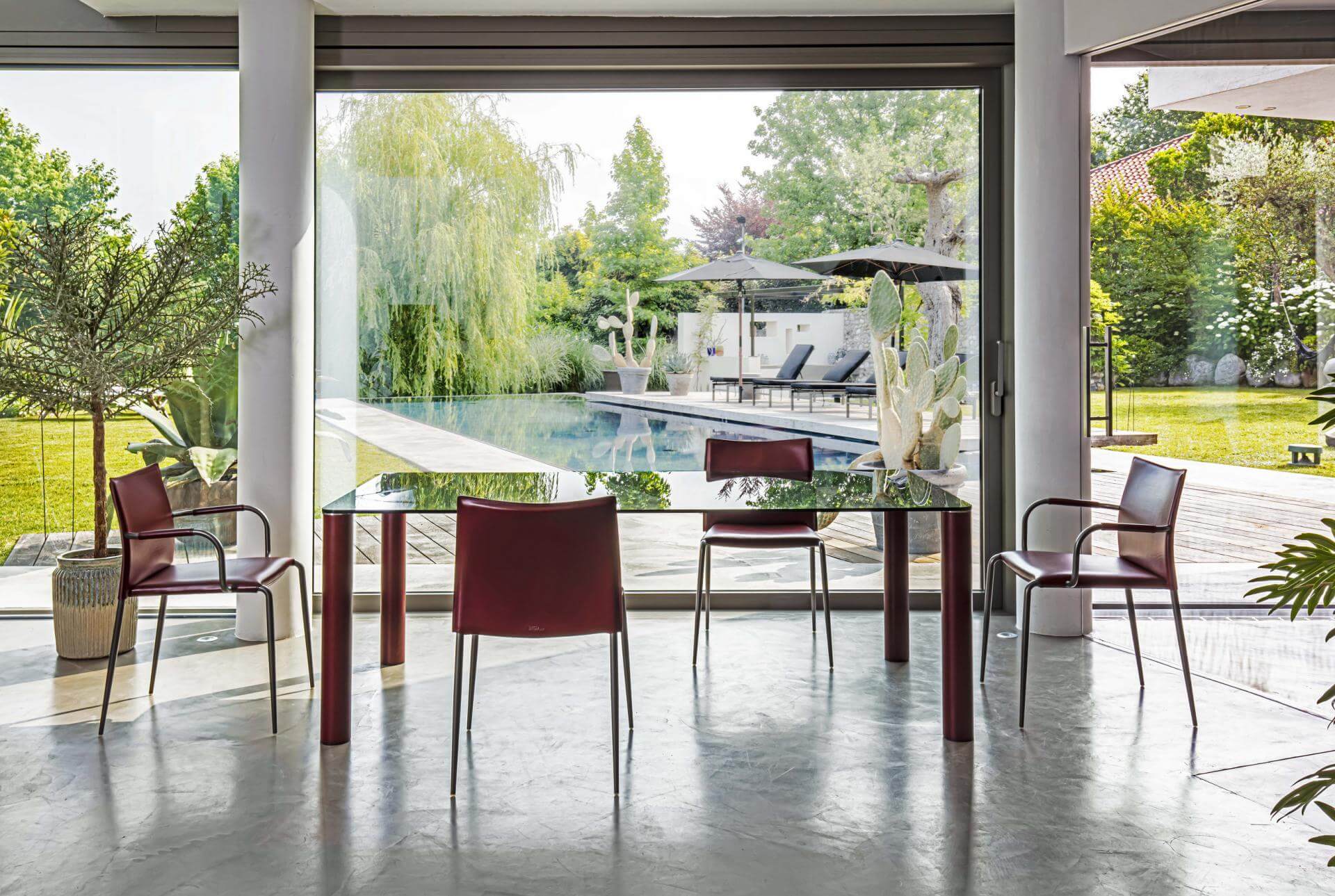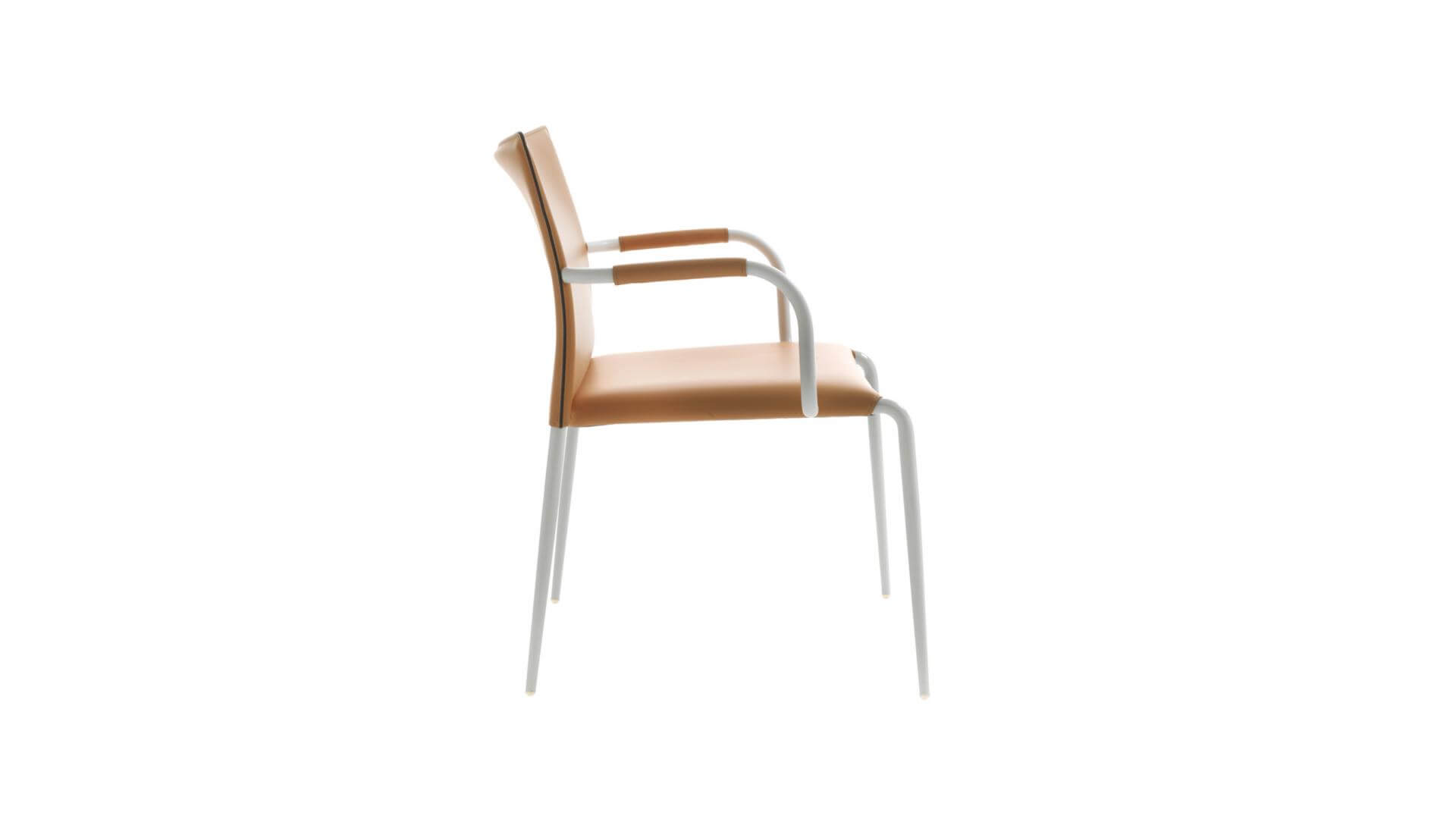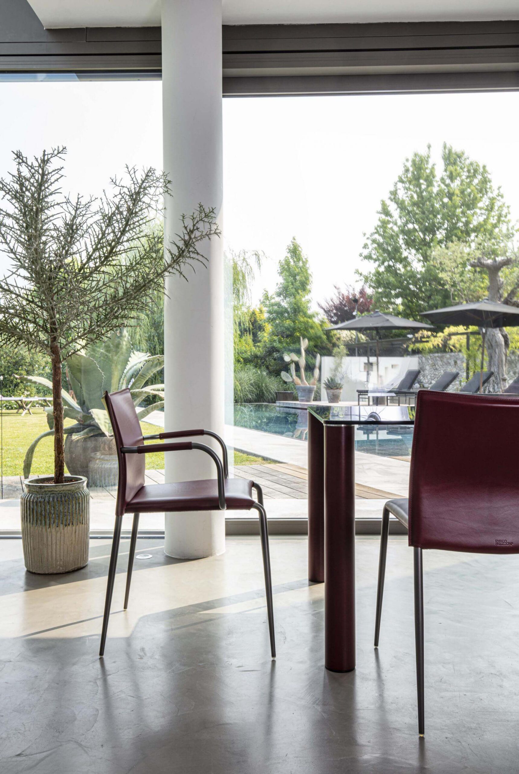Tubular iron frame, diam. 22 mm.All collection shows essential and simple lines synonymous with great elegance, accompanied by a wide variety of trendy metal finishing. Suitable for all contexts, from residential to hospitality, all items are stackable. Seat pan covered with black technical fabric. Stackable up to a maximum of 4 pieces (standard version); up to a maximum of 10-15 pieces (contract version).