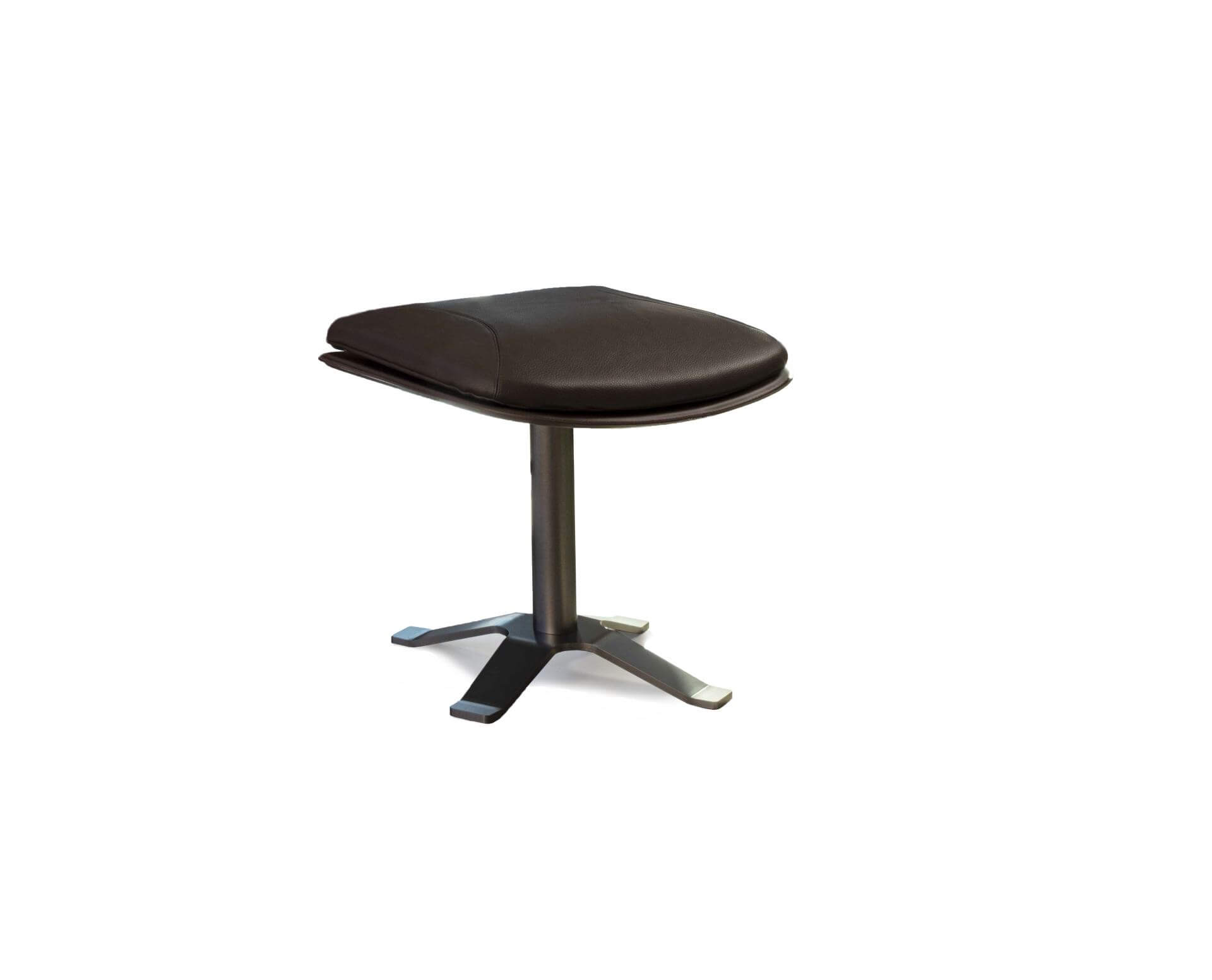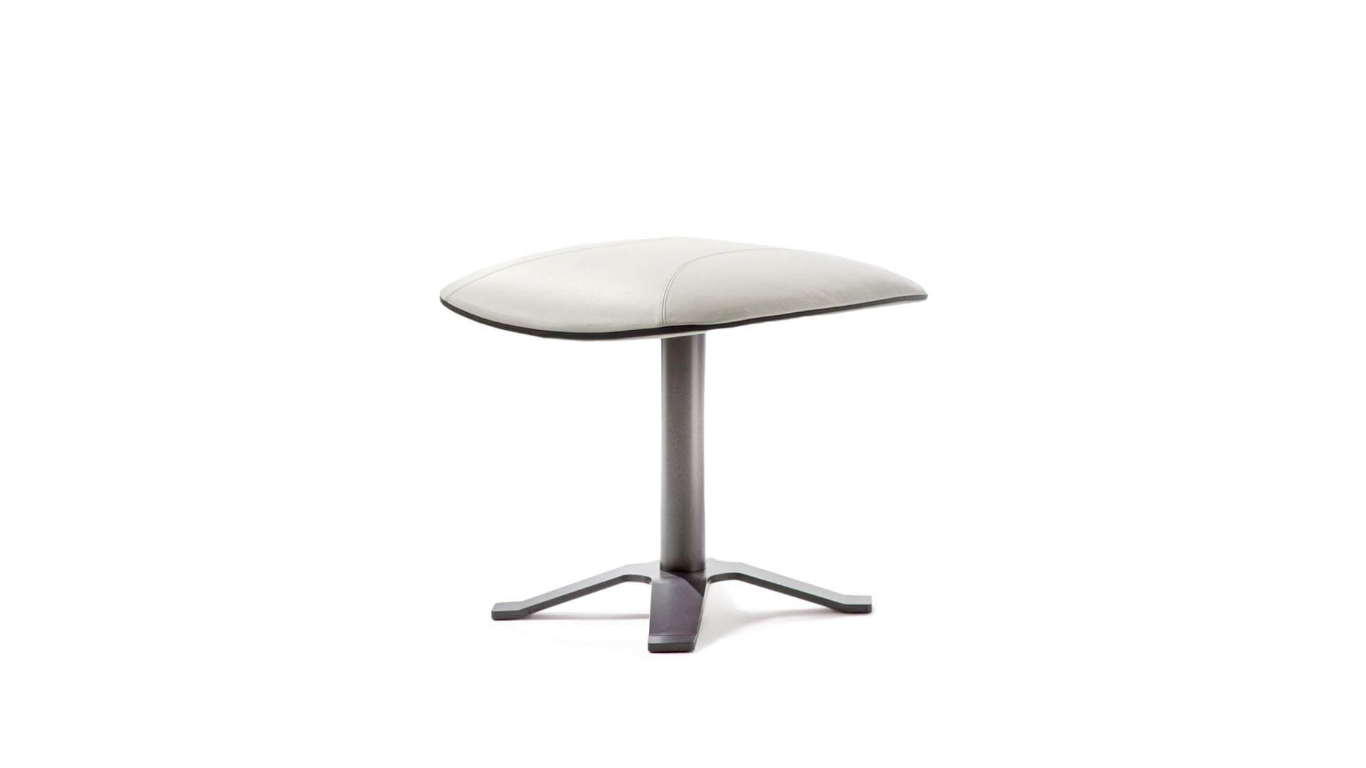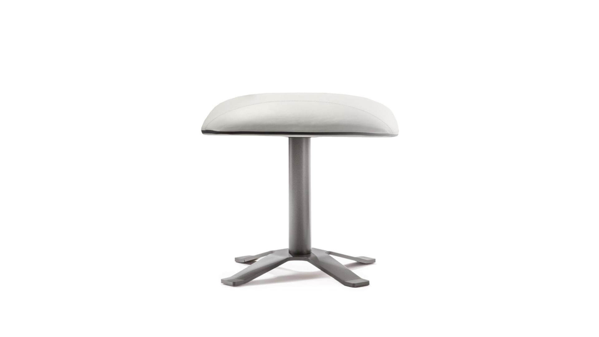 Footrest with painted X base and padded cushion with stitching and black zip closure.