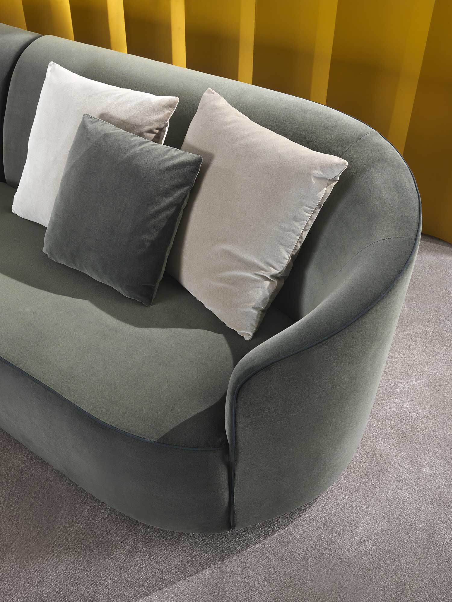 Another strong point of the Moon collection is the possibility of customisation. Thanks to our technical department, the sofas can be made in customised lengths to meet specific customer requirements. You can customise the upholstery by choosing between different materials and finishes for the metal bases. This flexibility allows you to create a unique and customised product for any environment, whether residential or contract.