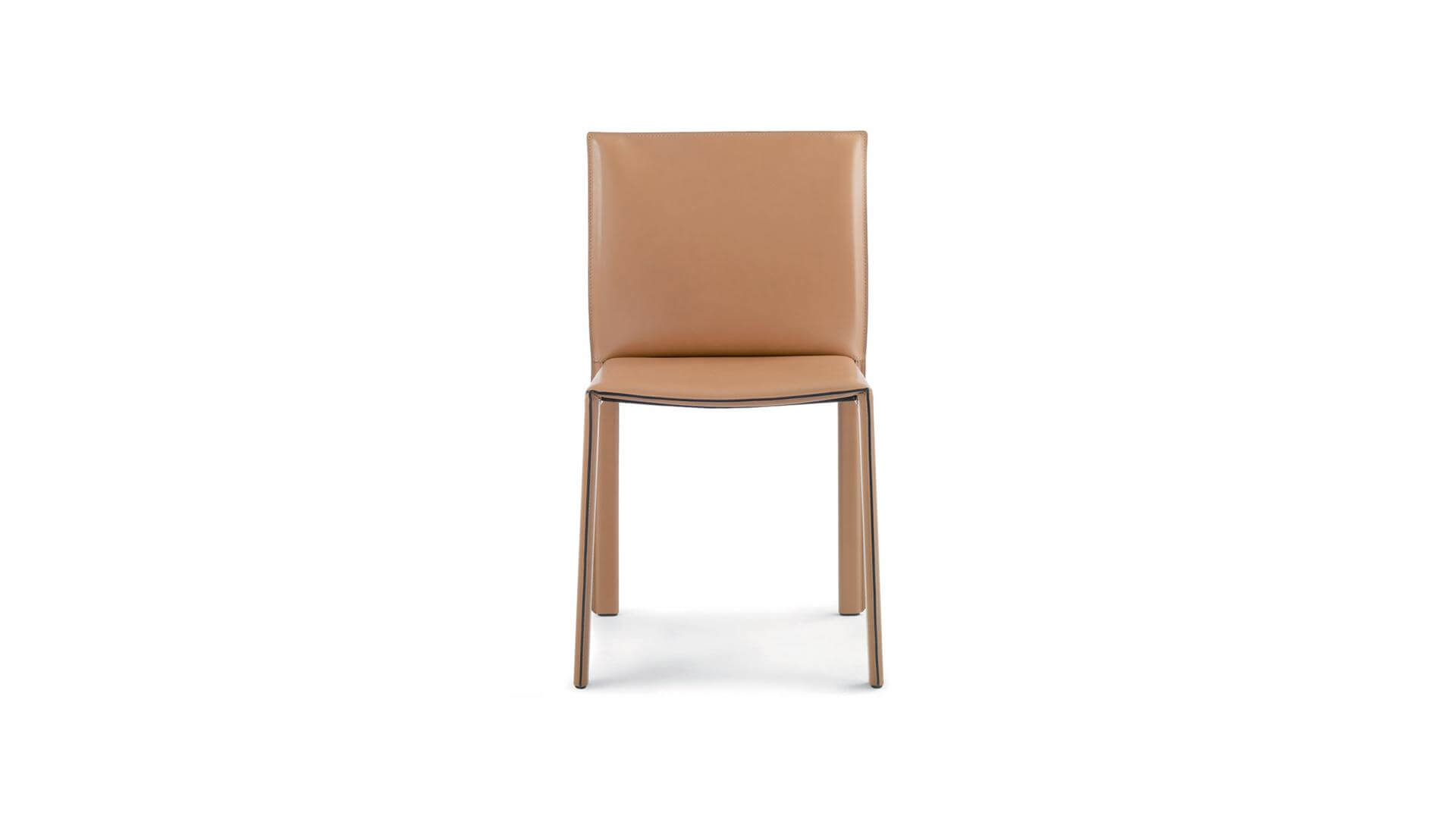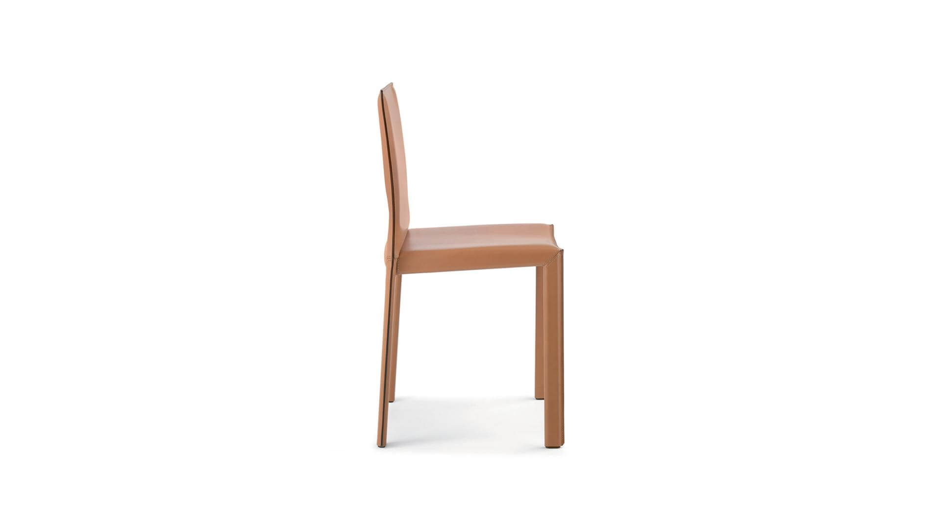 Steel frame in oval section. Metal seat pan covered with black tecnica fabric. Covering in CPF or CTT. Each item has four printed polyethylene glides (PE). Leather brings a feeling of unique naturalness to our senses: touch, look and smell this material gives a sensation of pleasure and familiarity. Using transforms leather, making it year by year a story of our lifestyle. Not only emotional, but also technical qualities: versatility, endurance and durability go hand in hand with softness and flexibility.