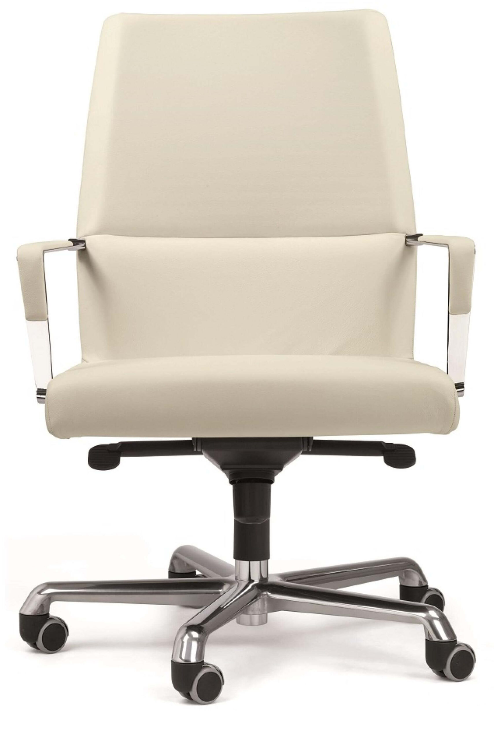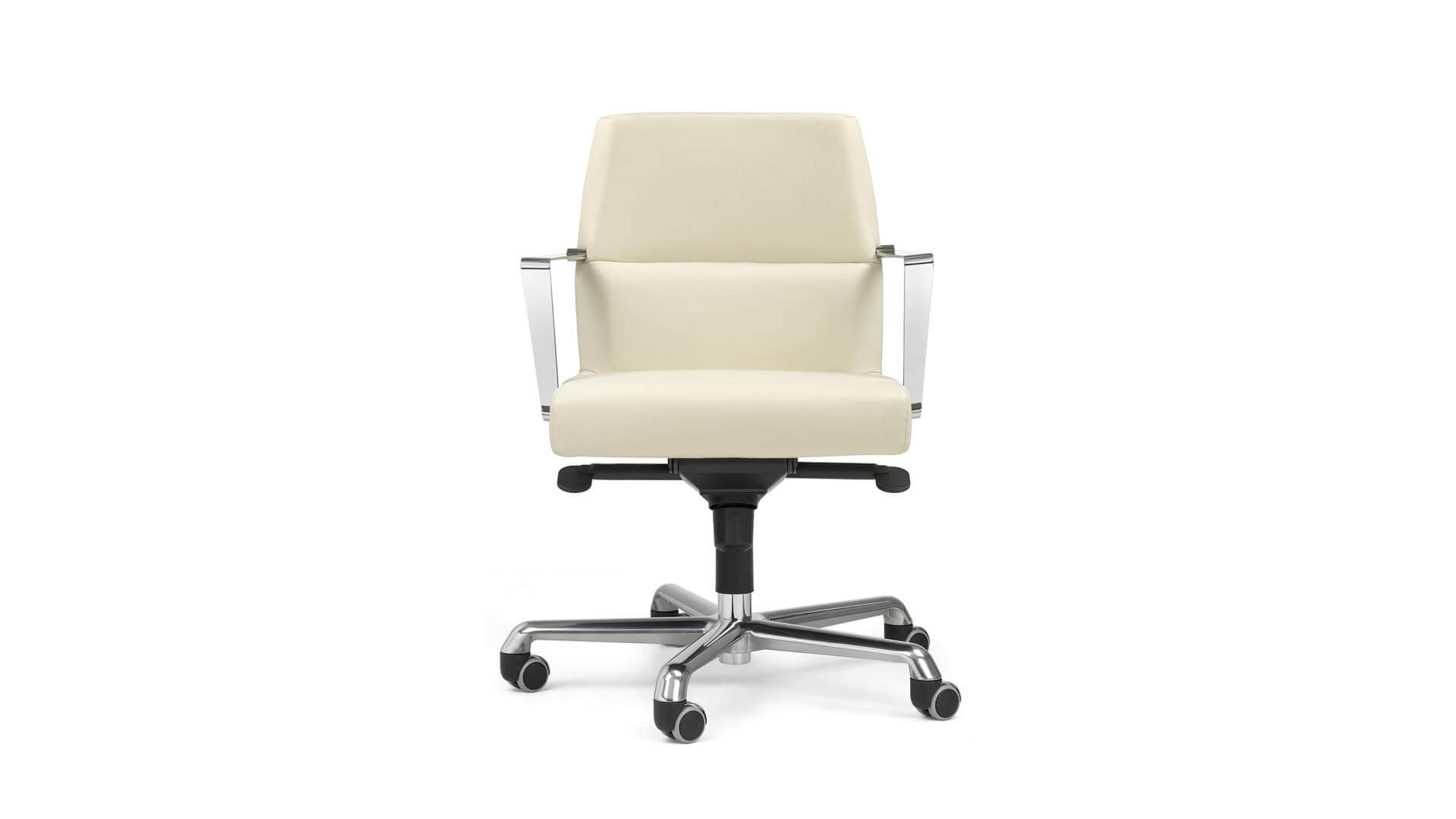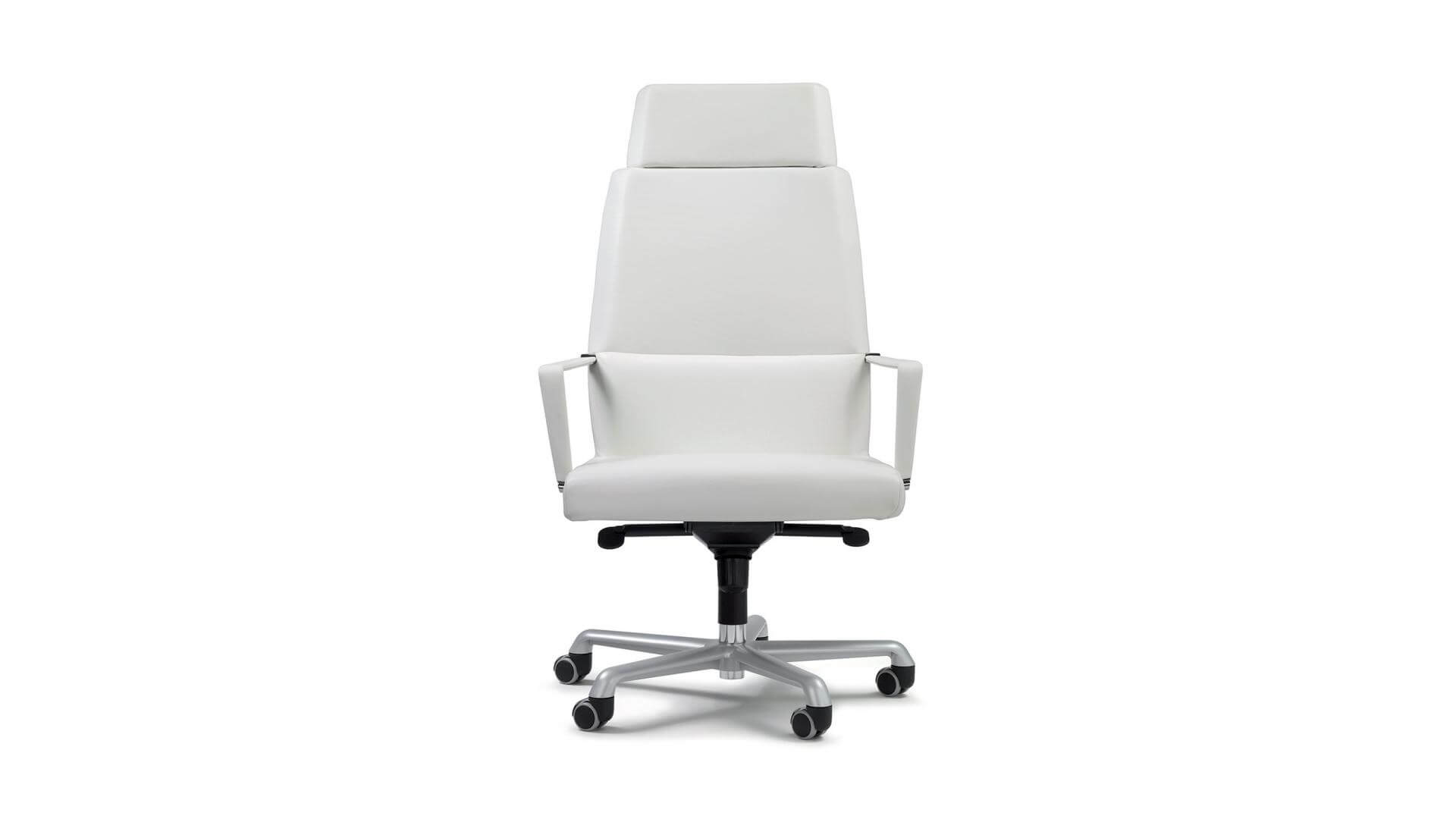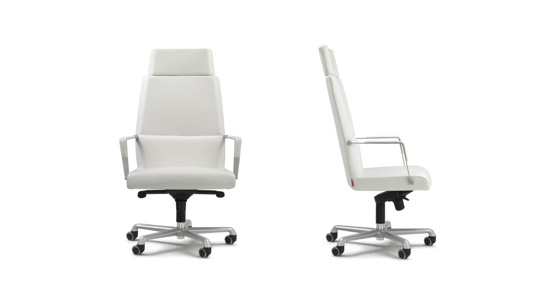 Inner steel frame; expanded polyurethane padding. Covering in PPF, IM, COM, FE, FX. The base’s castors can be replaced by appropriate sliding blocks. Gas seat height adjustment and tilt control mechanism (basic Synchro).