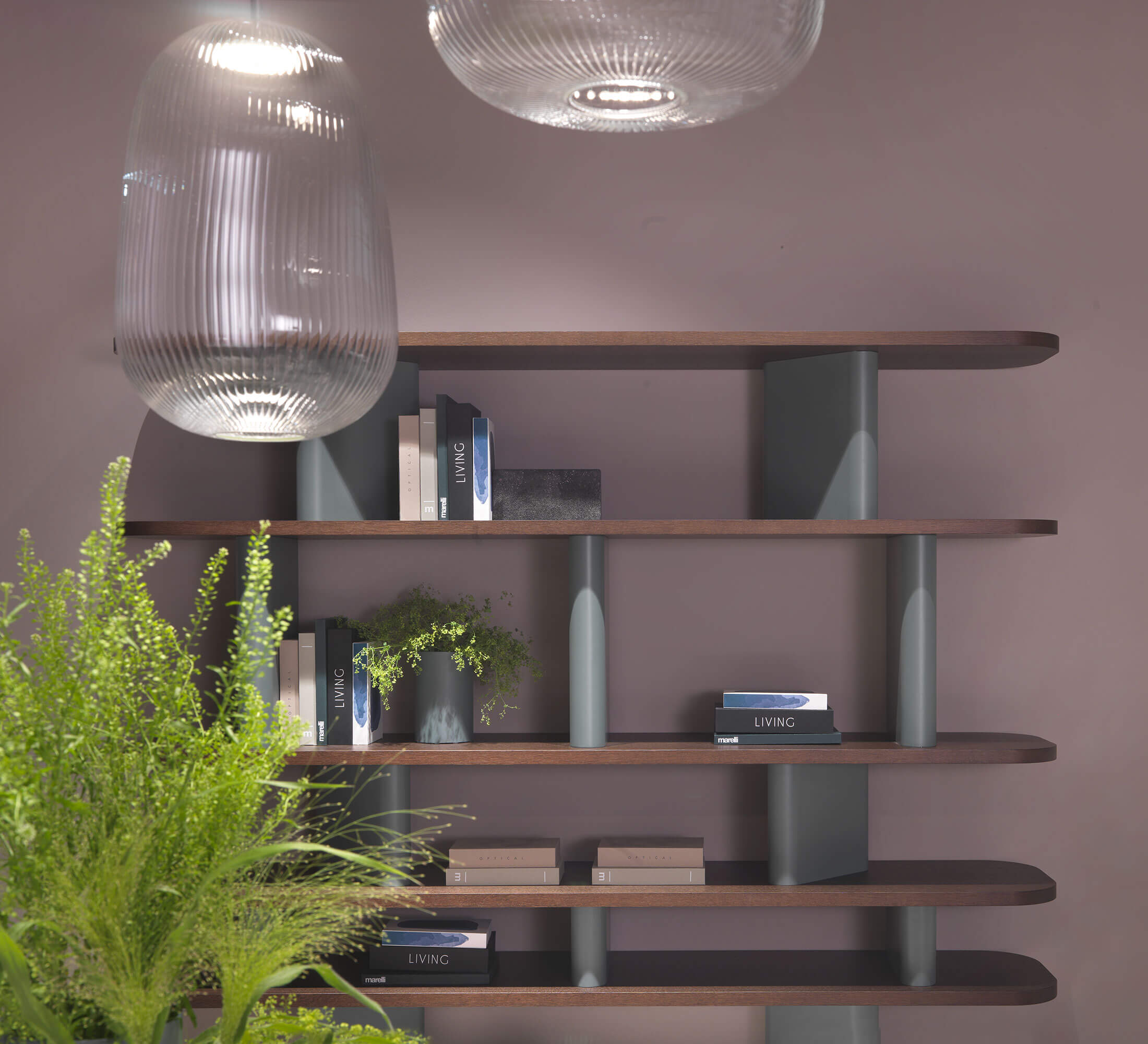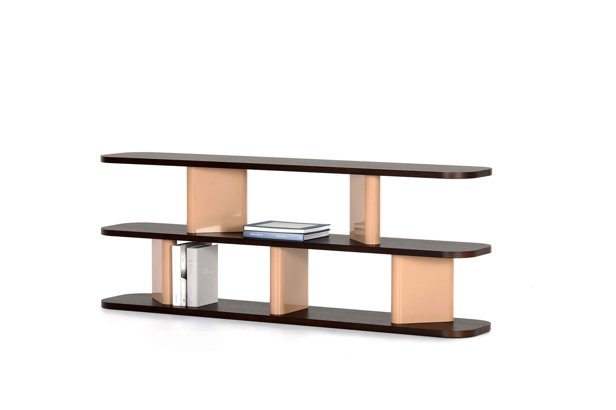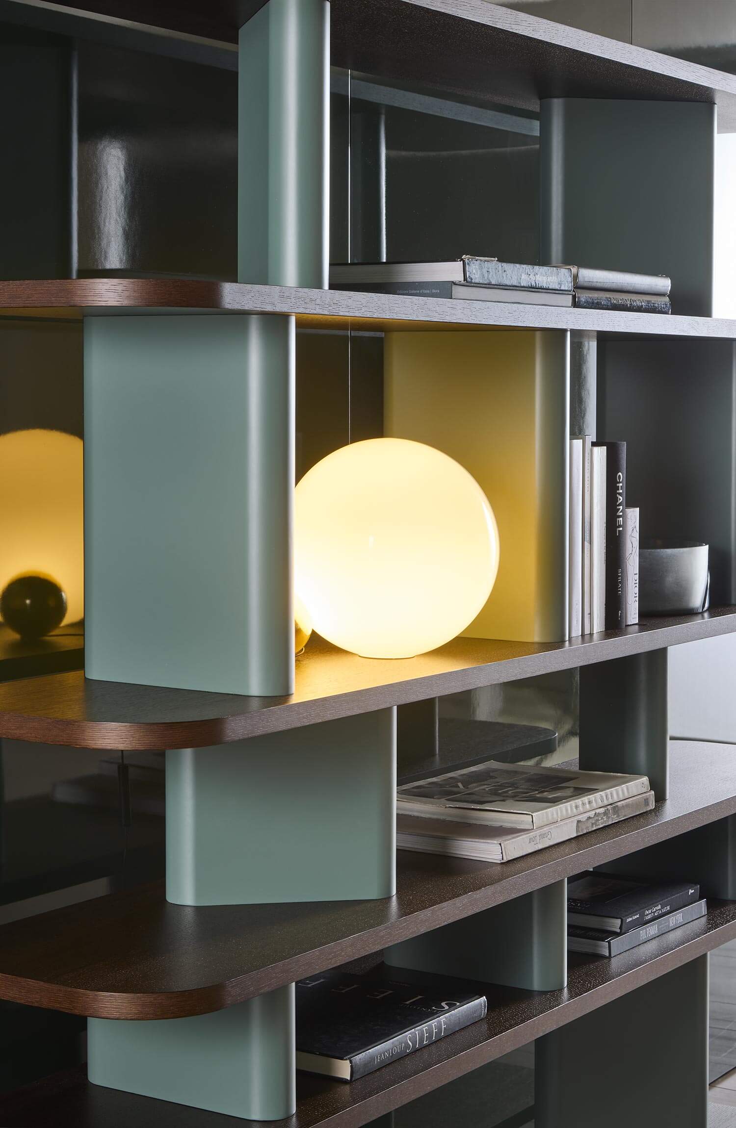 A distinctive feature is the possibility to customise the wooden shelves, offering over 15 different types of finishes to choose from. This choice allows you to adapt the bookcase to your own style and preferences, creating a unique and customised décor. In addition, the vertical elements can be lacquered gloss or matt, or painted with a delabré or pewter metallic finish.