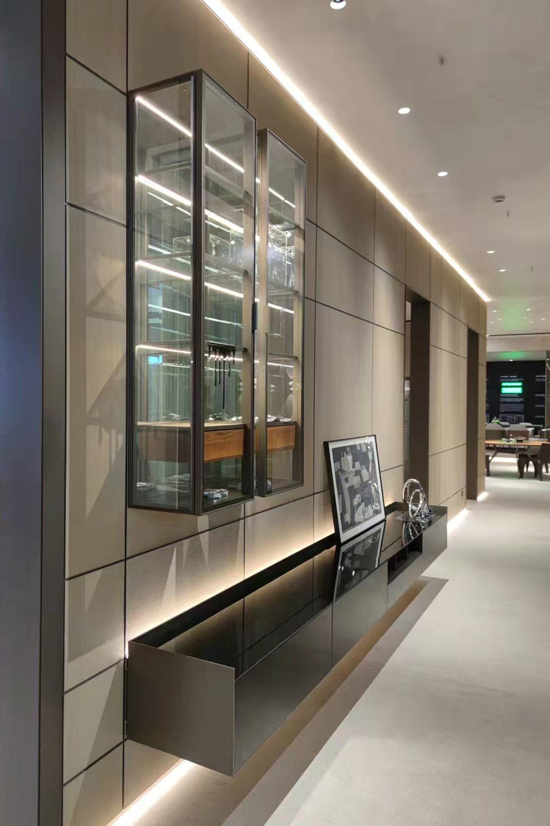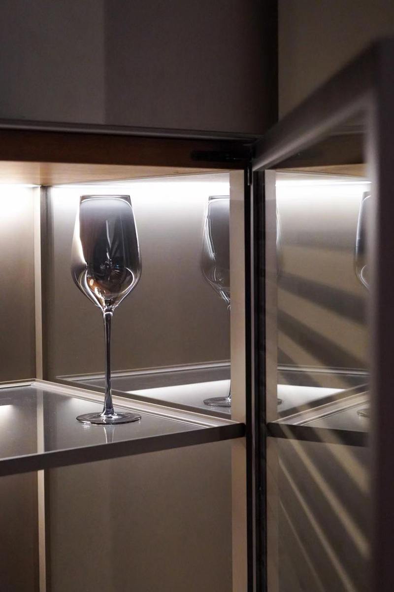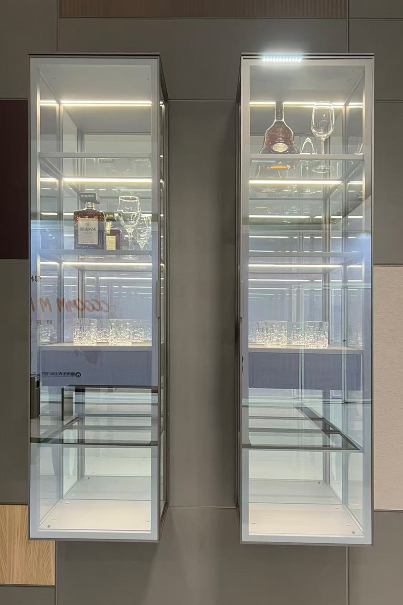 Integrated LED lighting, available in dimmable and motion-sensor options, bathes the interior in a soft glow, accentuating the displayed items and creating a captivating interplay of light and shadow.
