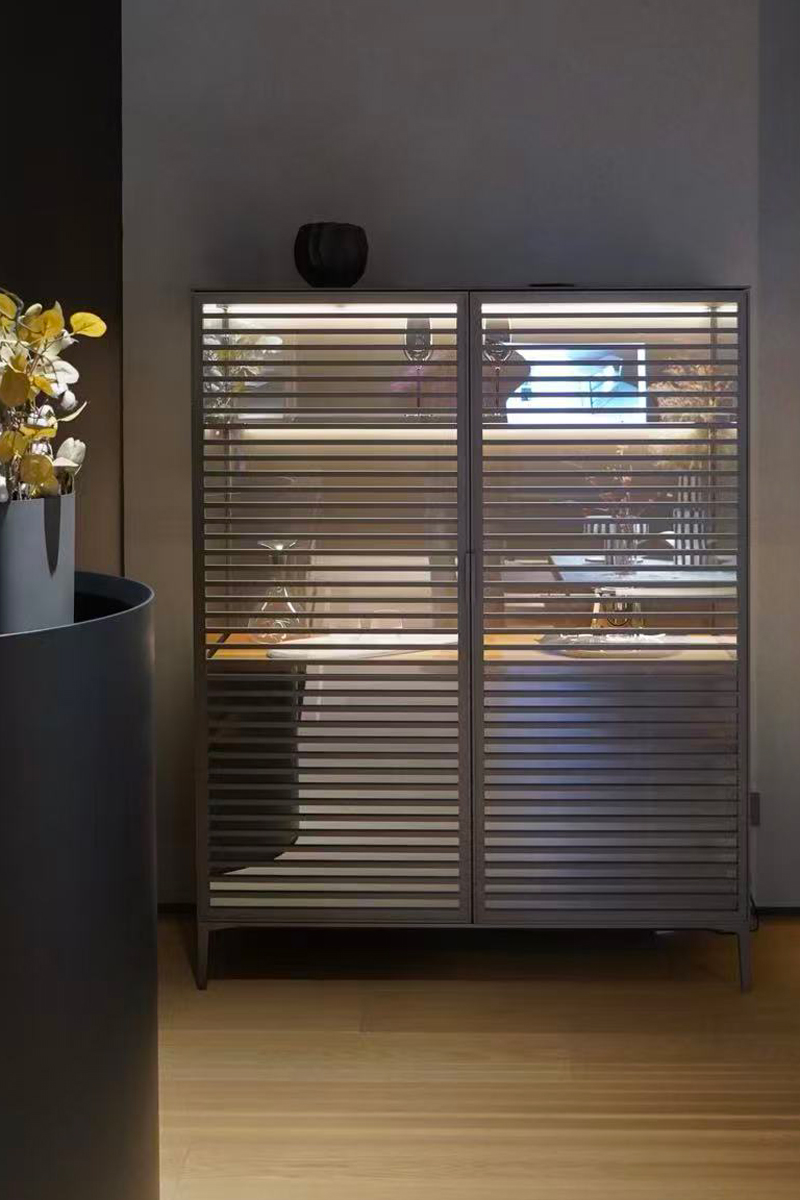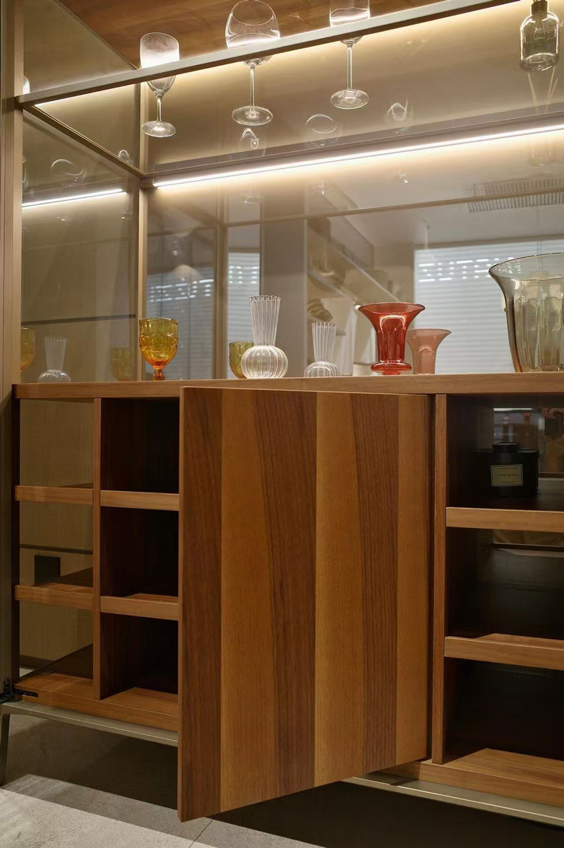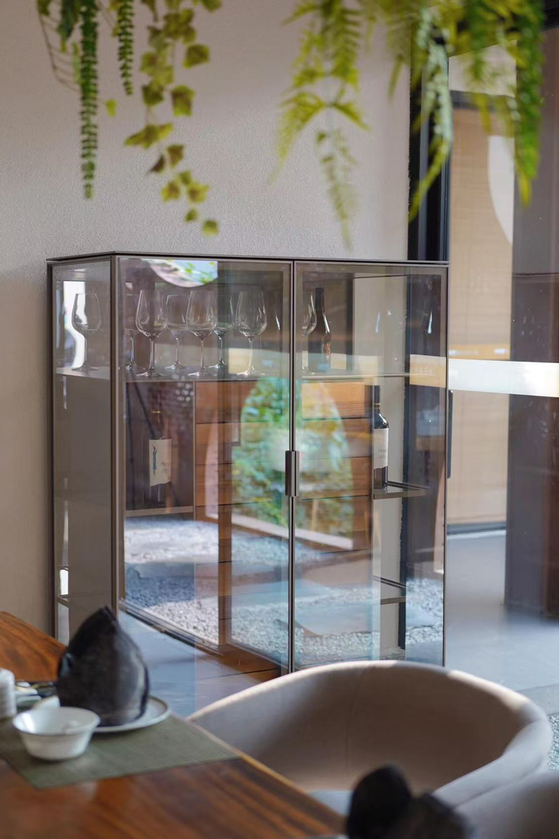 Loma Casa’s glass cabinets transcend mere storage solutions; they are sculptural elements that elevate the living space, embodying a harmonious fusion of function, form, and finesse.