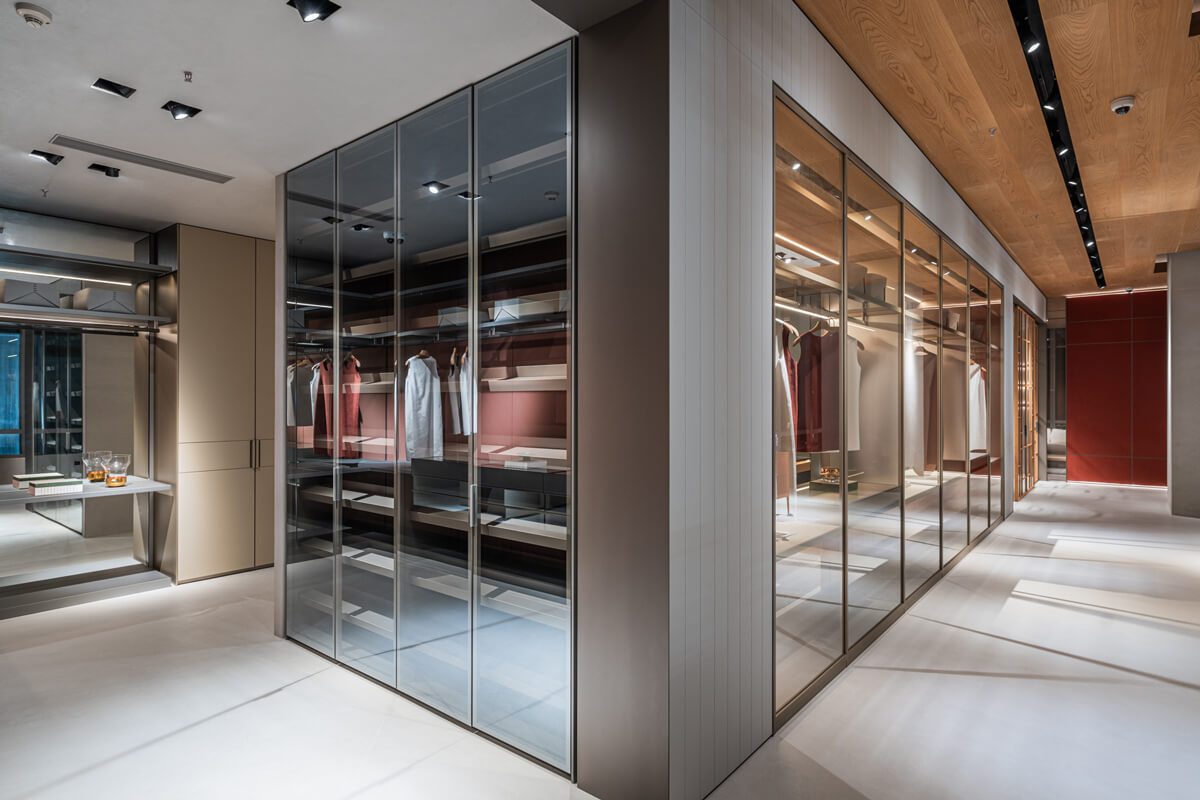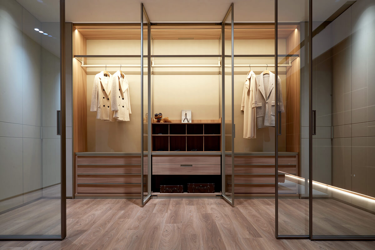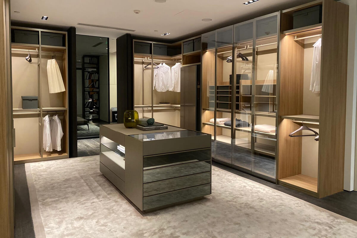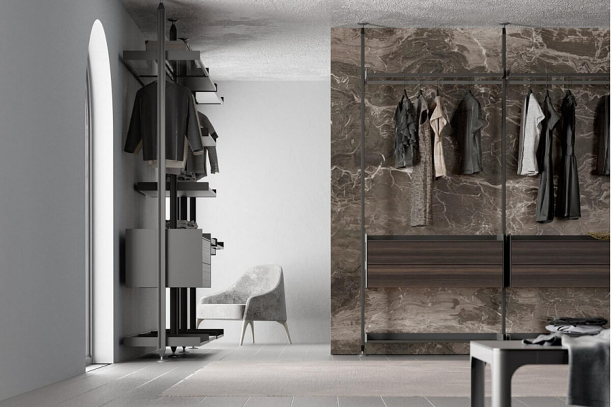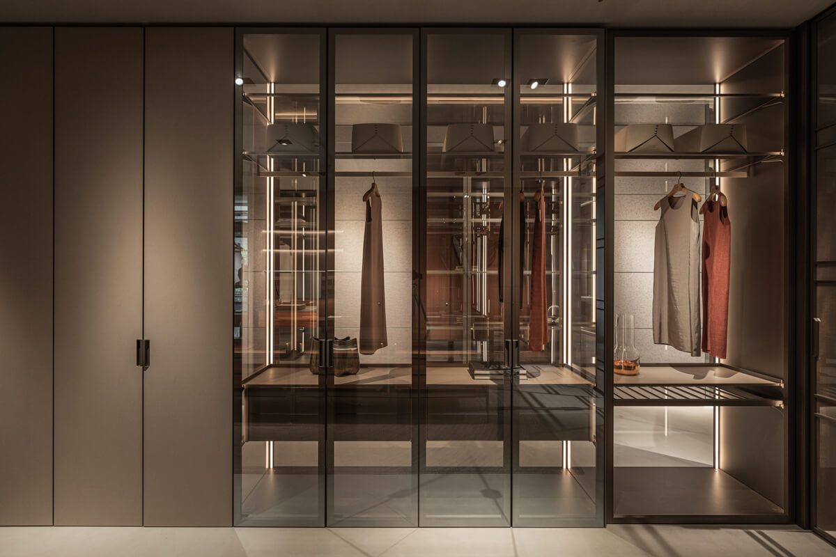 Portale Walk In Closet (System G) by Loma Casa introduces a light, open approach to Italian modern wardrobe design. Thicker side panels ensure durability, while door-free storage volumes allow flexible, personalized configurations shaped around everyday living.