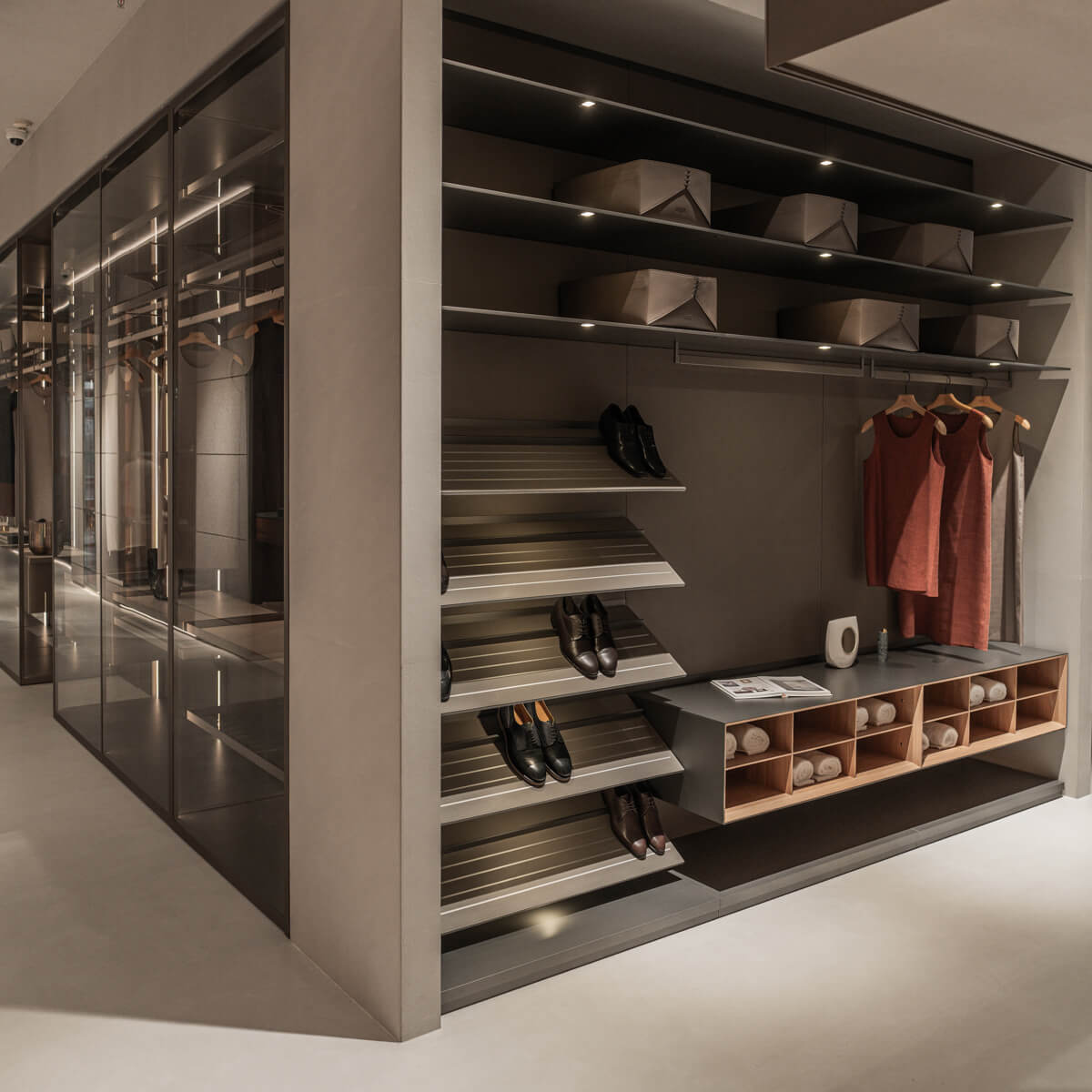 Designed with a refined Italian design approach, the Loma Casa Walk-In Closet reimagines the traditional wardrobe as an open, elegant system. Clean structures, durable panels, and door-free compositions create generous storage volumes with complete freedom of configuration.