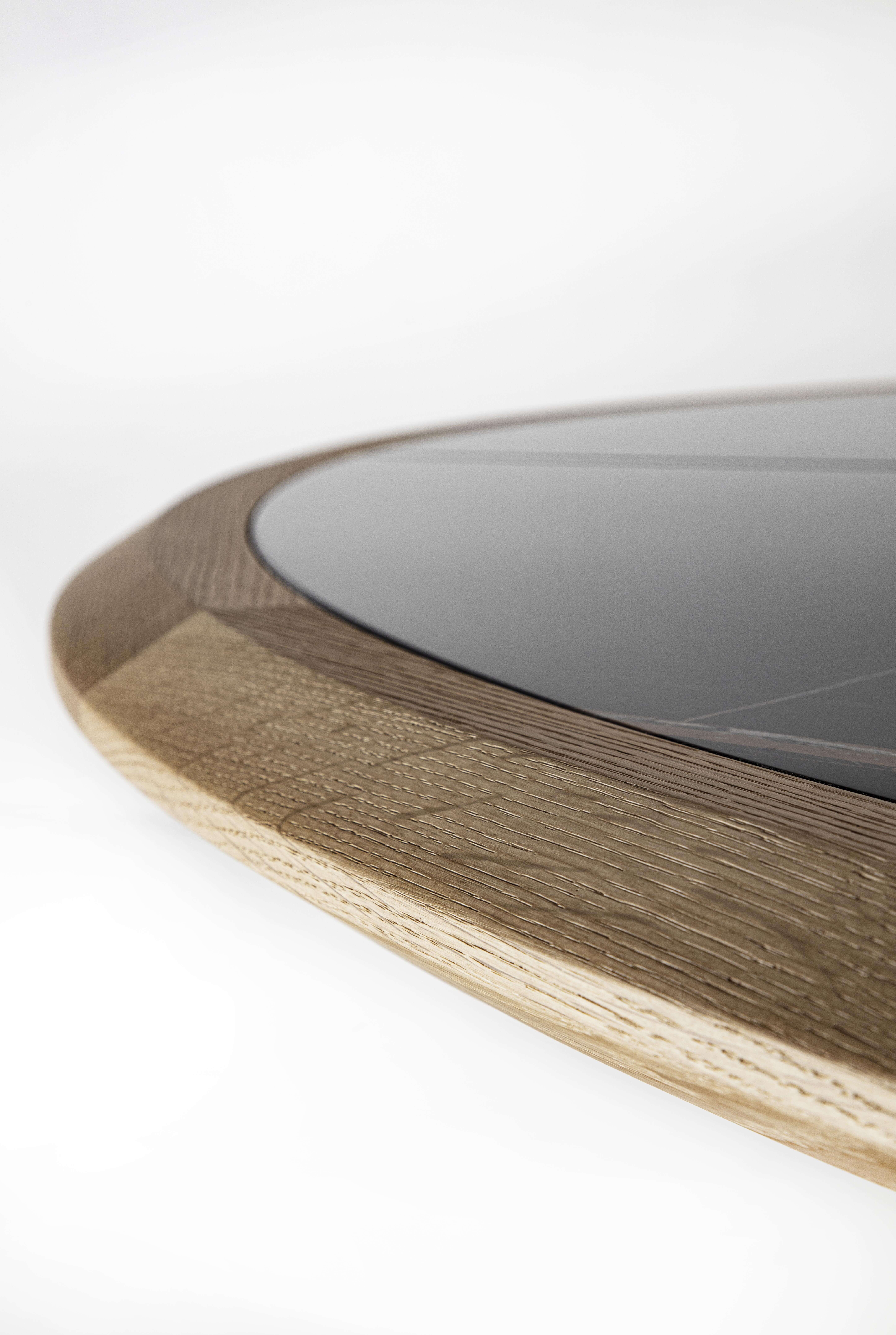 Structure: solid wood walnut veneer / solid wood oak veneer / solid wood black oak; Top: marble