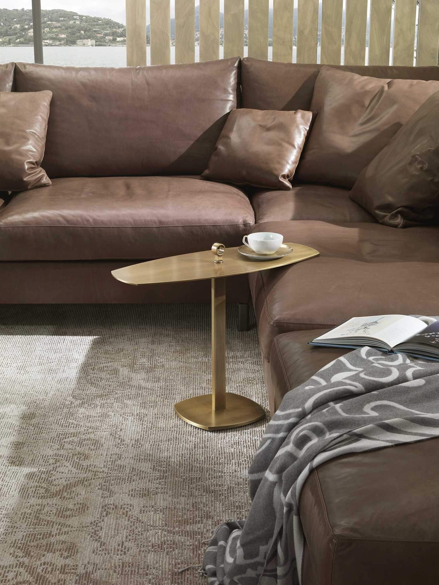 Leaf is an elliptical design server made of metal, designed to be placed next to the sofa so that you always have the items you need most at hand. Its elliptical shape fits well into the seat cushion of the sofa, providing a convenient holder for storing small items such as remote controls, glasses, smartphones or other accessories.